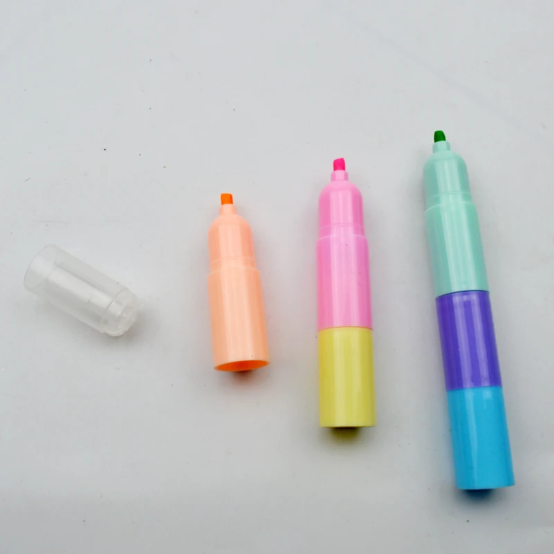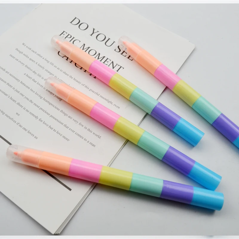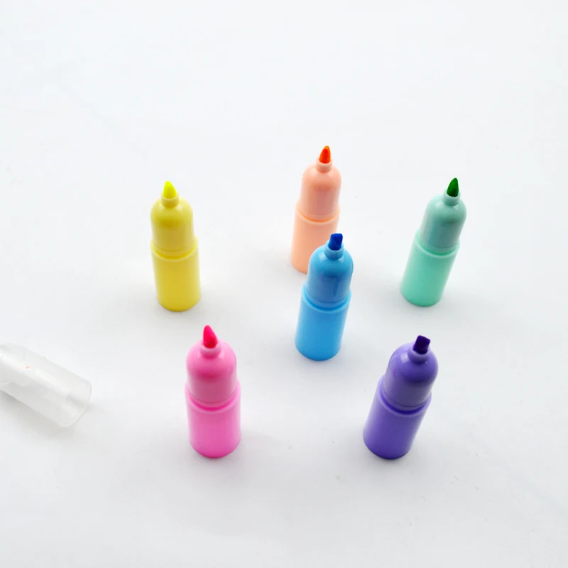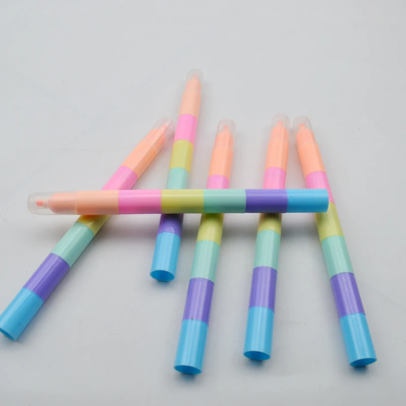 Customize 6 Multi Colors School Kid Plastic Body Detachable Round Flat Tip Highlighter Pen