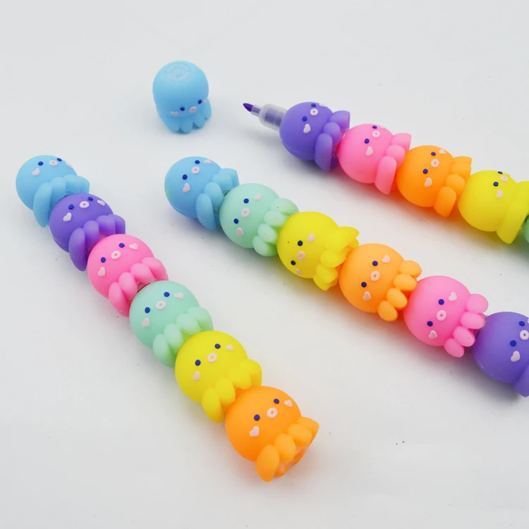 Advertising 5 Colors Cute Private Label School Kids Flat Tip College Plastic Marker Highlighter Pen