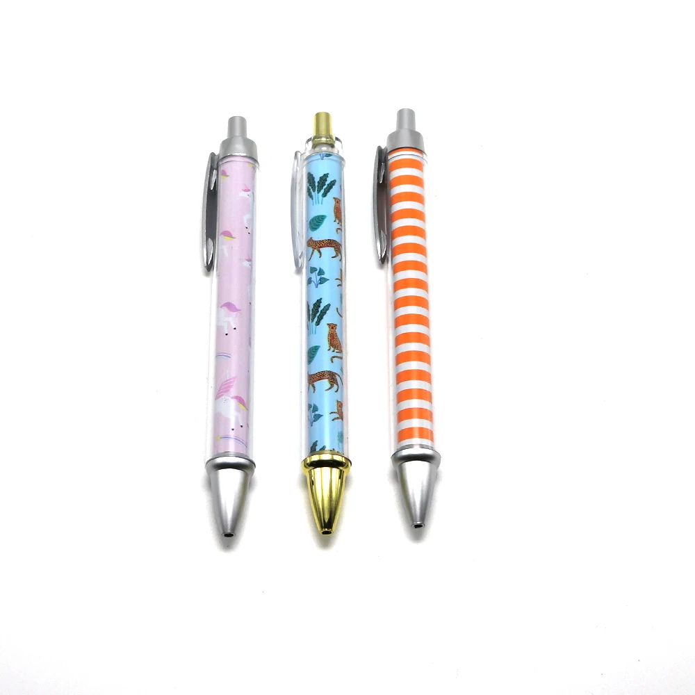 Promotional Souvenir Gift Ballpoint Pen Plastic Press Pen with Inner Rod Heat Transfer Print Pen