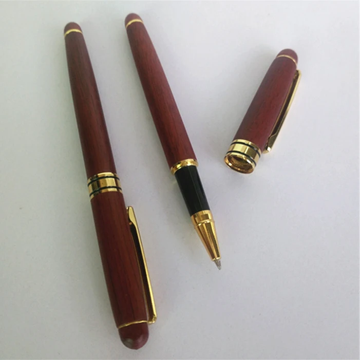 Customizable Red Wooden Ballpoint Pens with Gold Logo 0.5mm Gel Ink for Gifts Factory Price Available