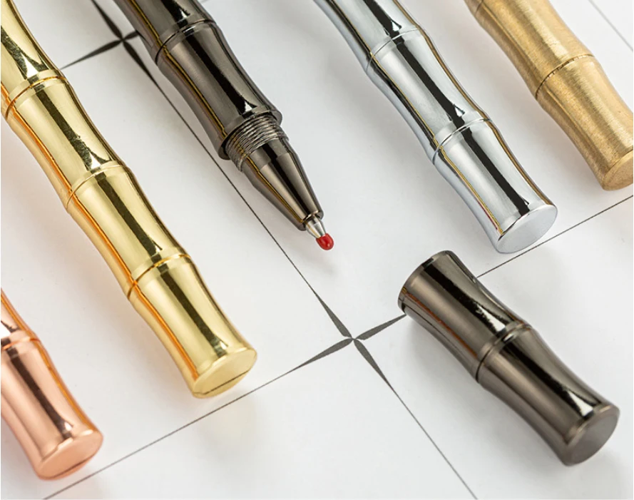 Luxury Brass Ballpoint Pen Unique Metal-Bamboo Design Custom Logo Perfect Gift for Business & Hotels 0.5 mm Writing Width