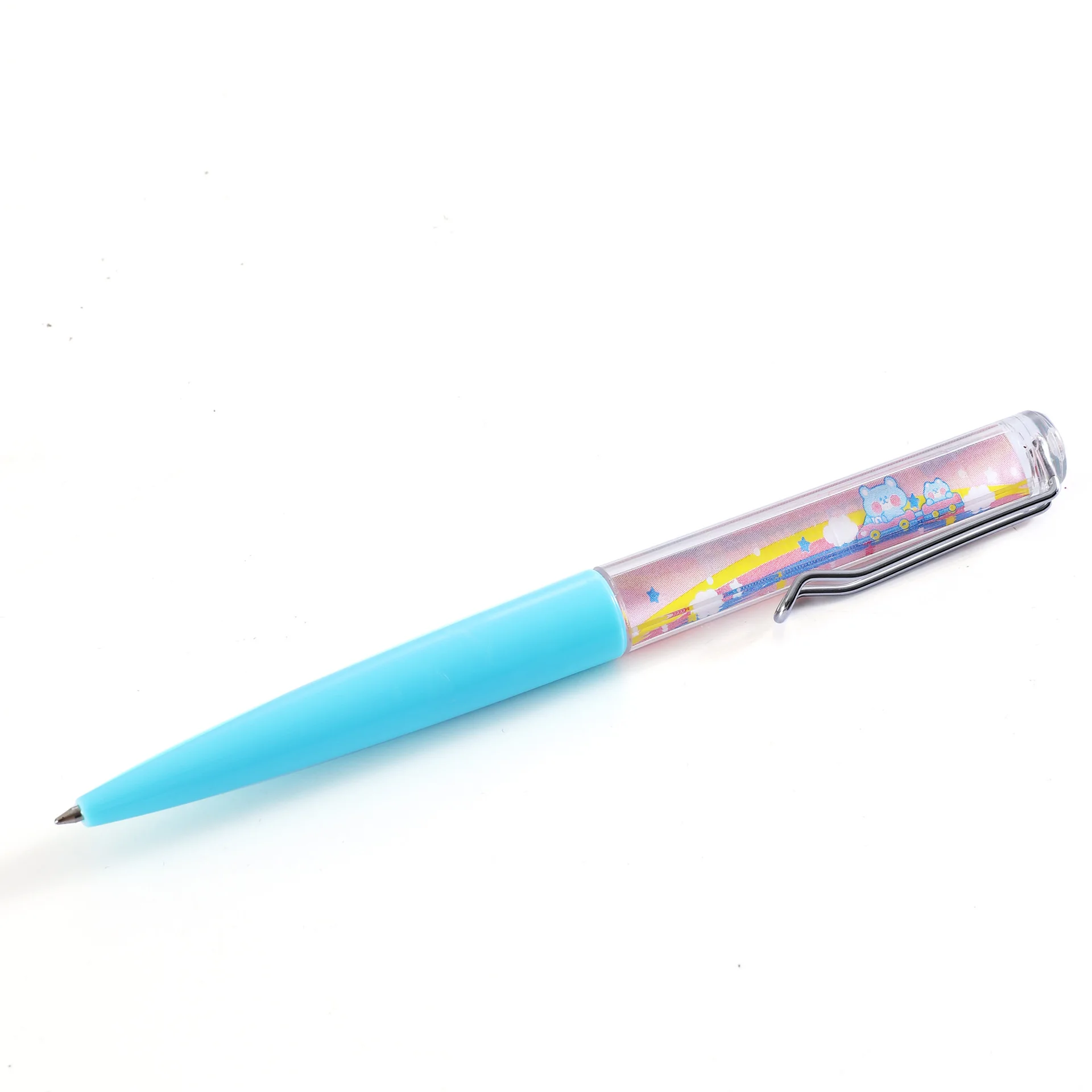 Customizable 2D Liquid ABS Plastic Floater Pen 1.0mm Writing Width Novel Ballpoint Pen with PVC Metal Cheap with OPP Case