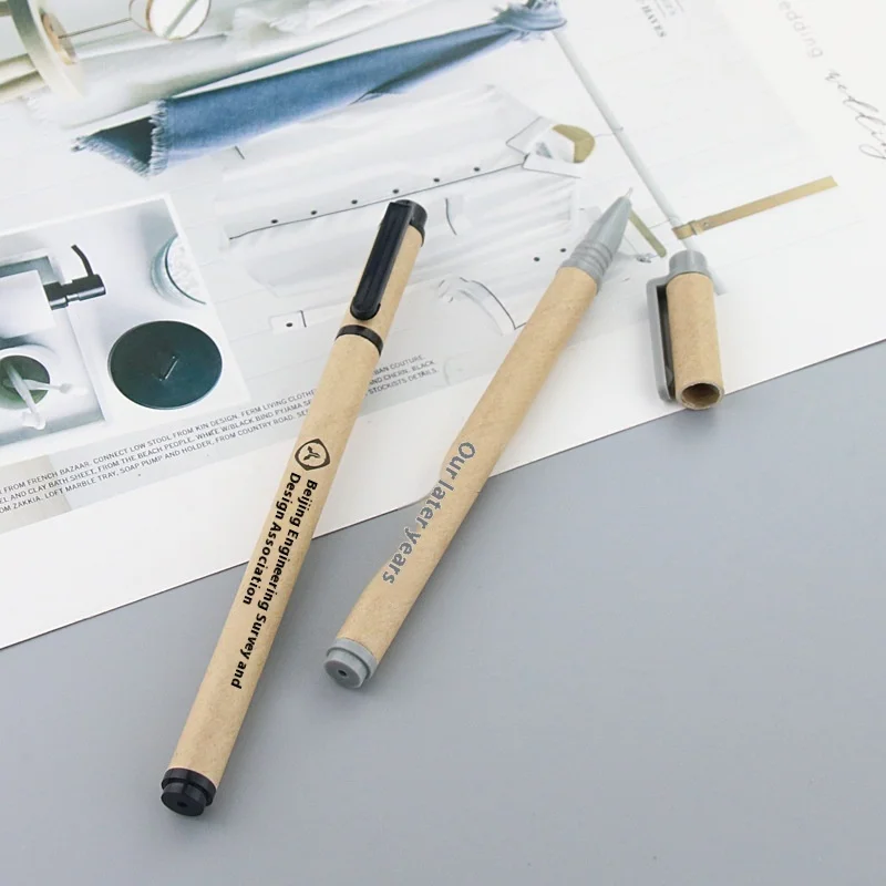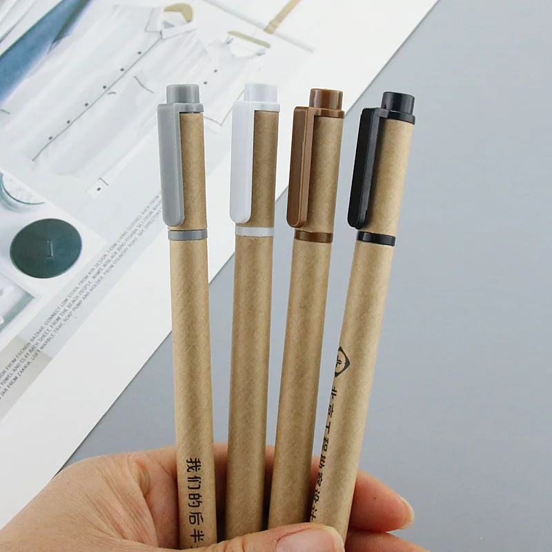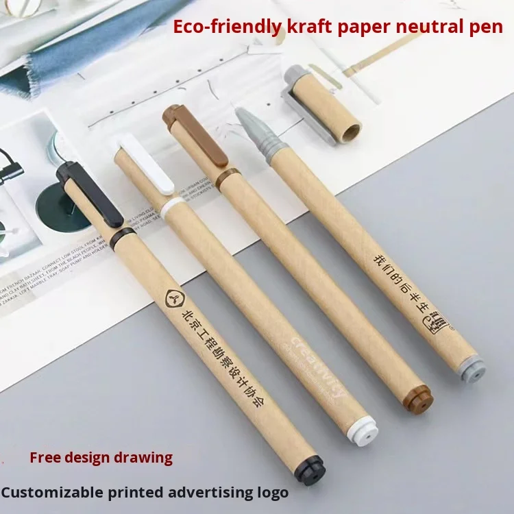 Custom Logo Kraft Paper Gel Pen 0.5mm Black Ink Environmentally Friendly Advertising Water Pen Wholesale Customization