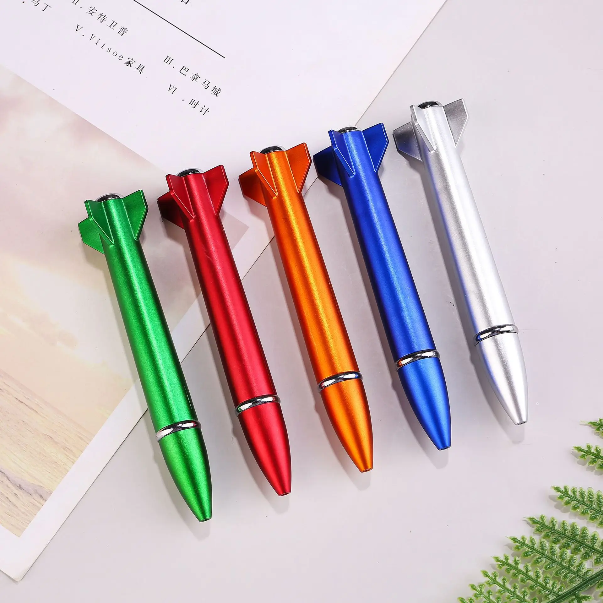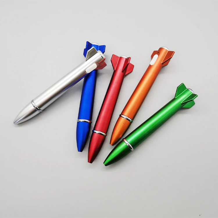 Custom Logo Printing 2-in-1 Novelty Rocket Shaped LED Light Ballpoint Pen 1.0mm Writing Width Promotional Gift Pen