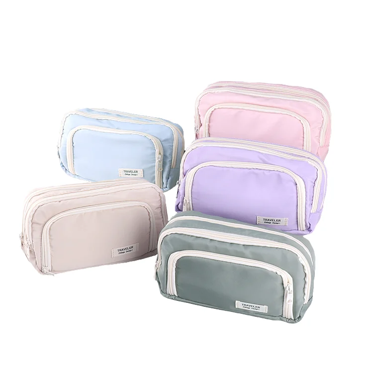 Cute Large Capacity Oxford Five-Layer Fabric Canvas Drawstring Pencil Case Color-Matching Learning Stationery Pen Bag