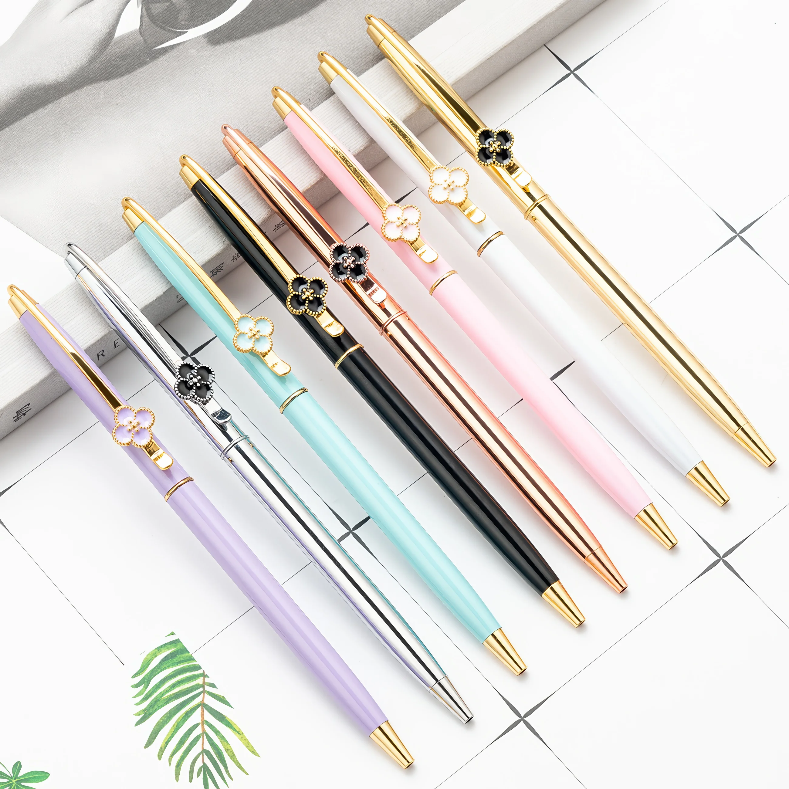 Custom Logo Novelty Four-Leaf Clover Metal Ballpoint Pens 1.0mm Writing Width for Office & Sports Ad Promotional Gifts