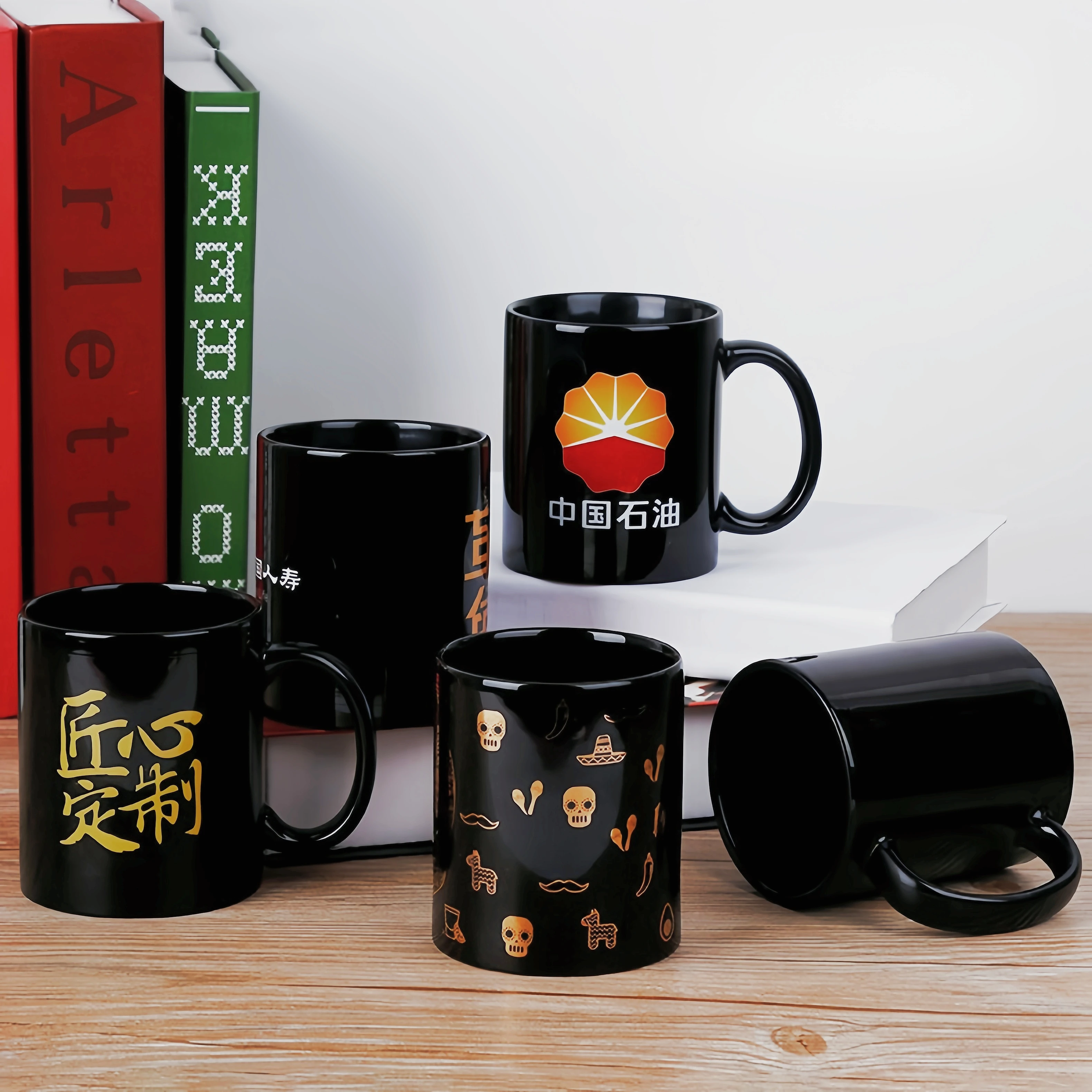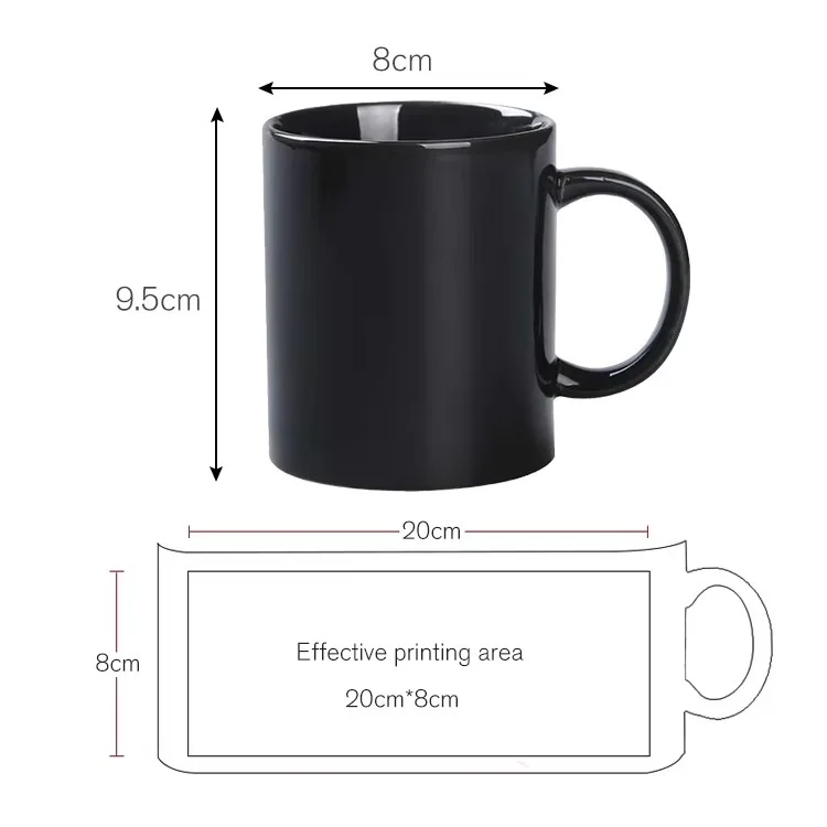 11oz Eco-Friendly Porcelain Black 3A Ceramic Coffee Mug Handmade Sublimation Cup with Custom Logo Promotional Drinkware Gift Cup