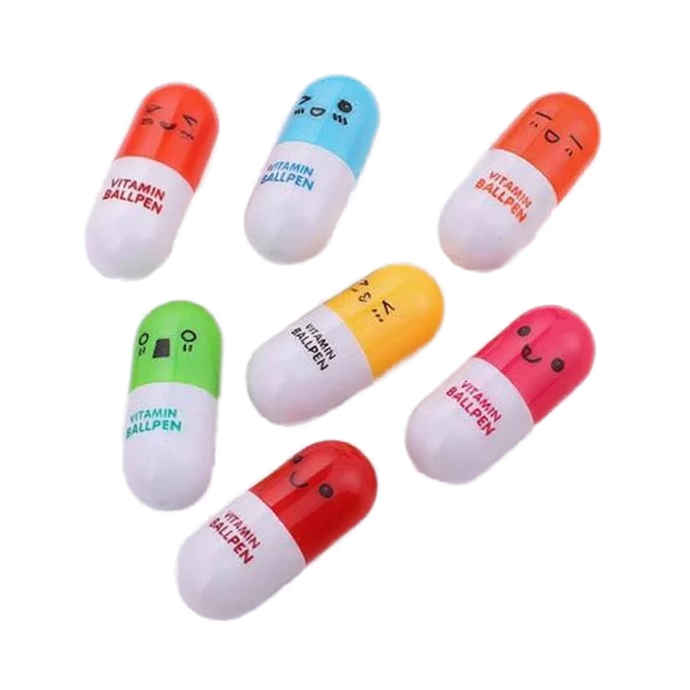 Cute Face Vitamin Capsule Design Retractable 1.0mm Plastic Ballpoint Pen Stationery Pill Shape