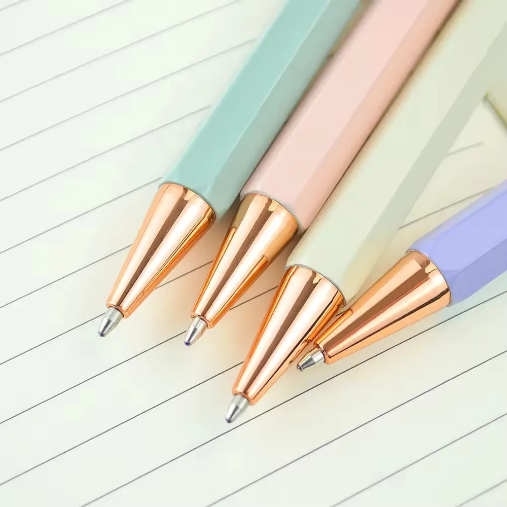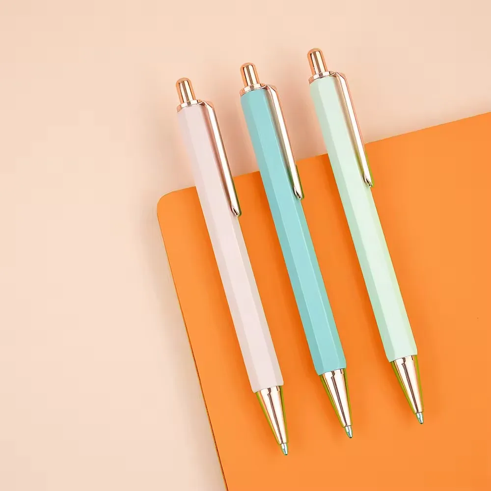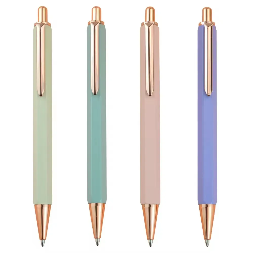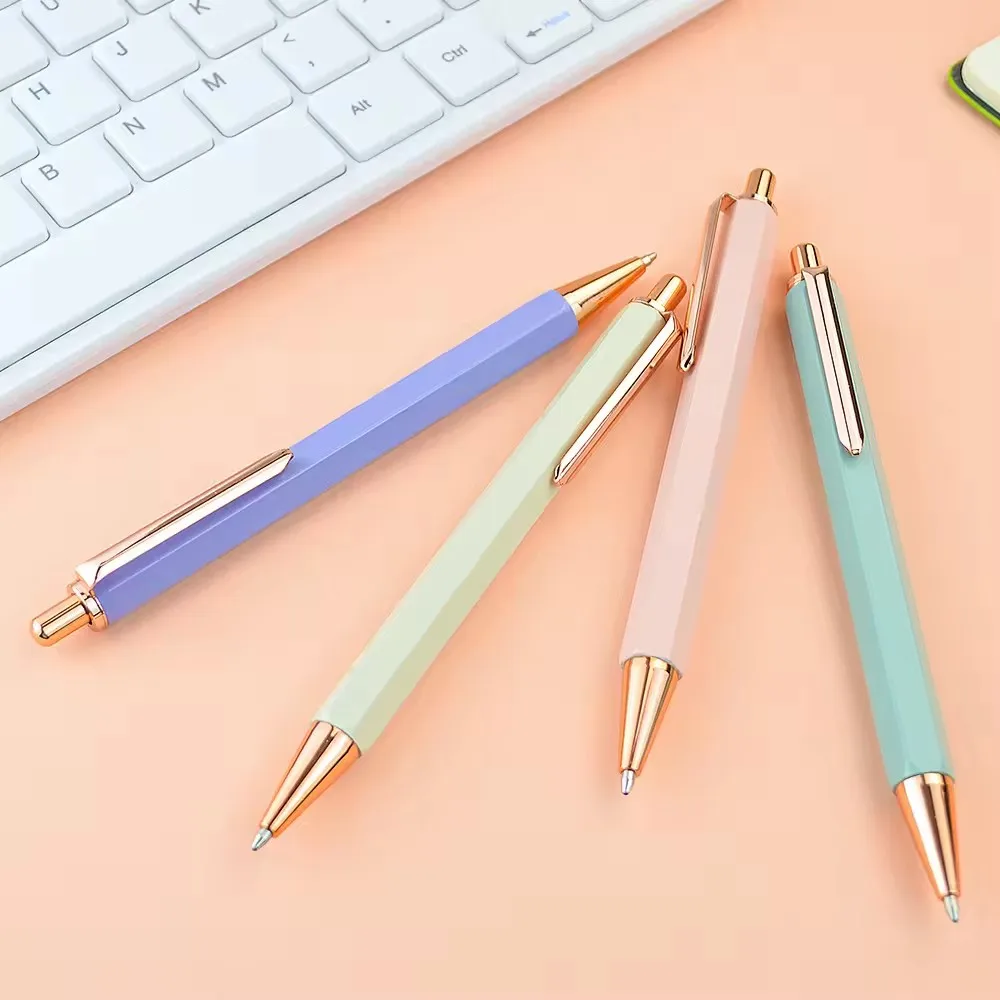 Hexagonal Aluminum Pole Push Pen Hotel Advertising Logo Printed Direct Sale Pure Metal Ballpoint Pen by Manufacturer
