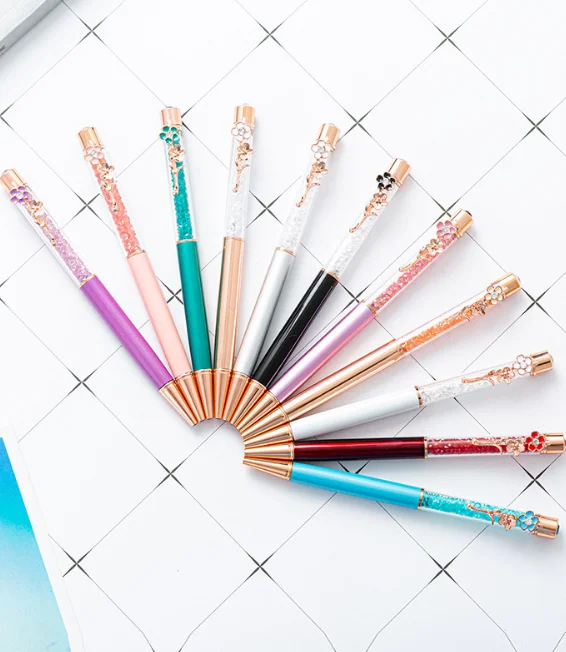 High Quality Attractive Metal Colored Diamond Ballpoint Pen with Customizable Logo Popular Flower Pen Clip