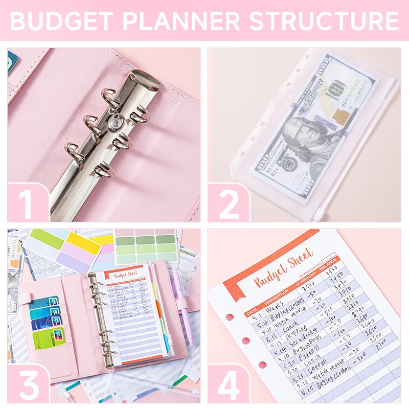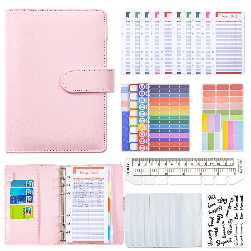 Customizable UV Printed Leather A6 Spiral Binding Loose-Leaf Planner Journal School Notebook Gift with Cash Budget Pages