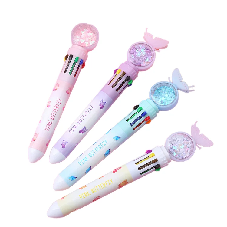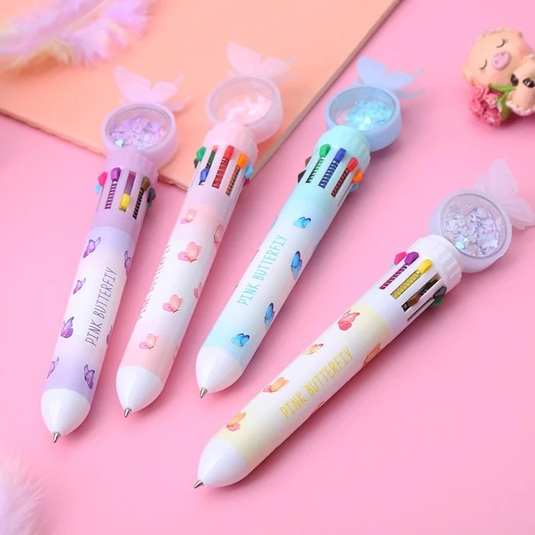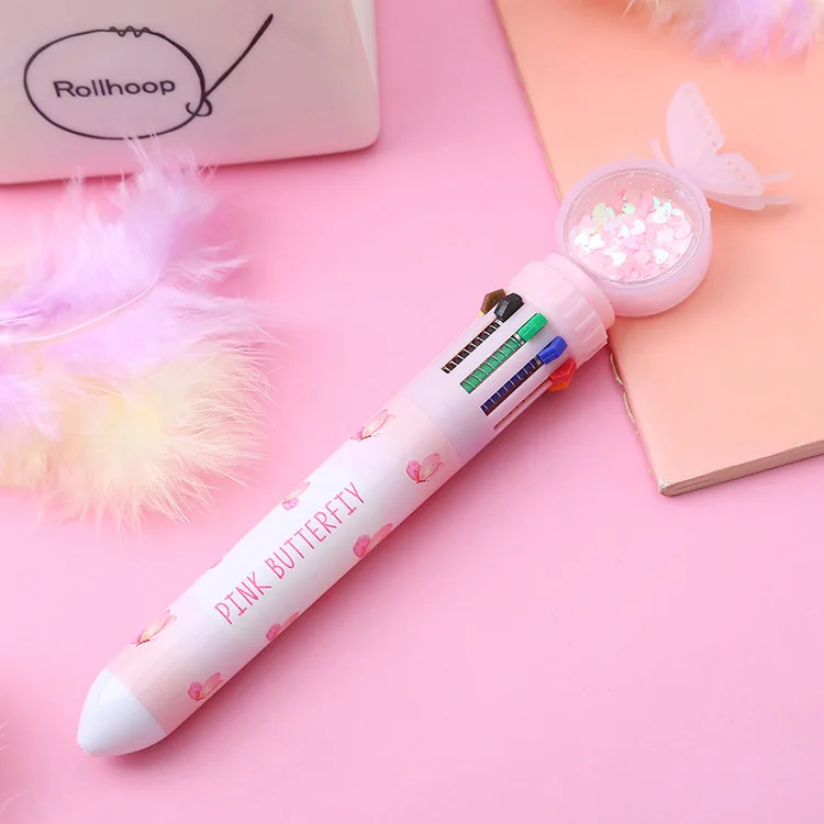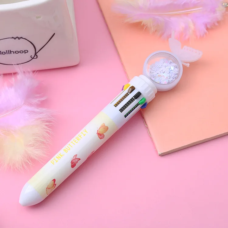 Creative Animal 0.5mm Ten-Color Ballpoint Pen Sequin Design Student Stationery Oil-Based Pen Girl Heart Colorful Journal