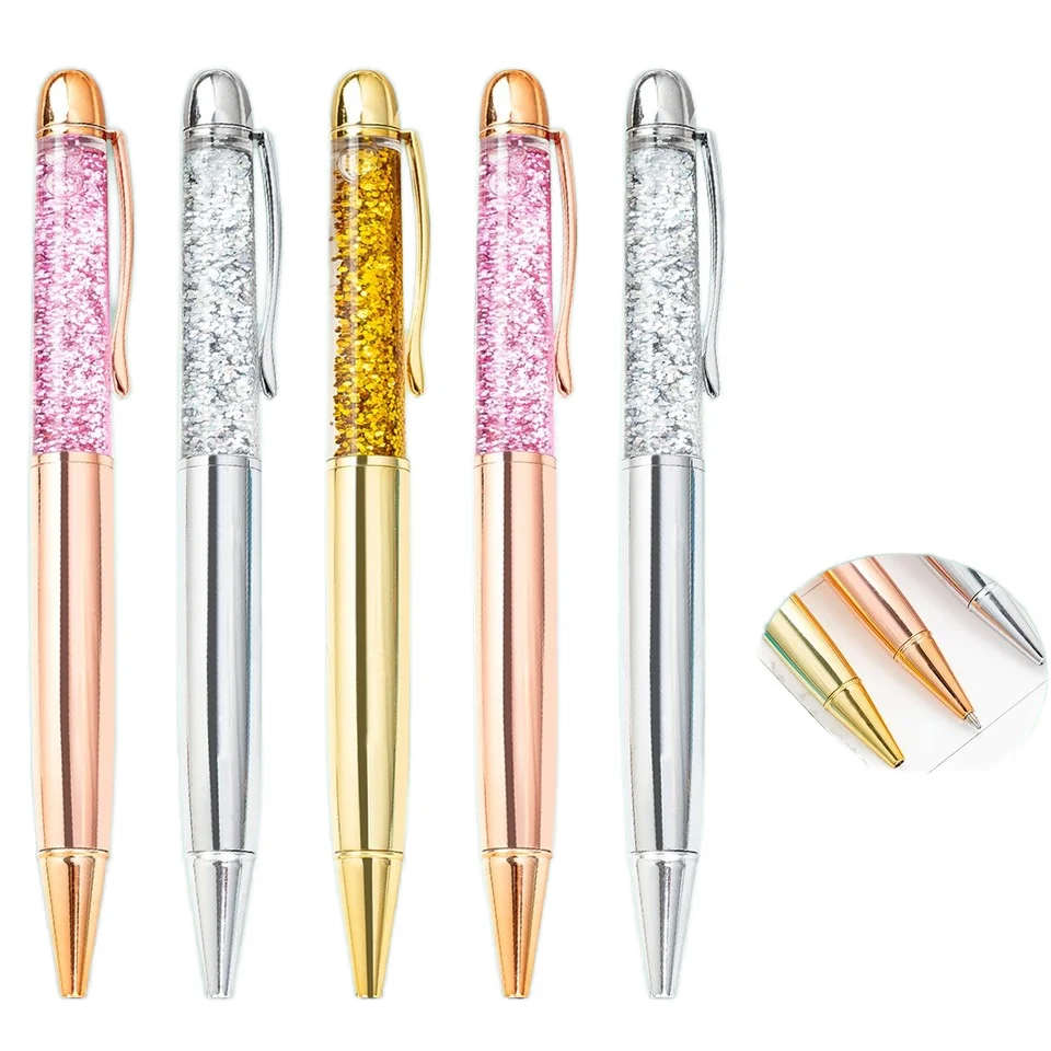 Crystal Quicksand Metal Animal-Shaped Ballpoint Pen Student Creative Gift Laser Engraving Logo Gold Powder Oil-Based 14.5cm