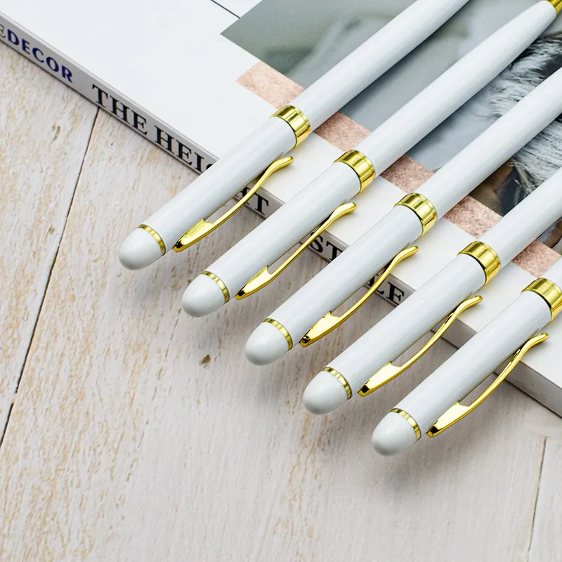 JM Manufacturer-Supplied White Metal Ballpoint Pen Black Ink 1.0mm Tip Customizable Logo Digital Printing for Promotional