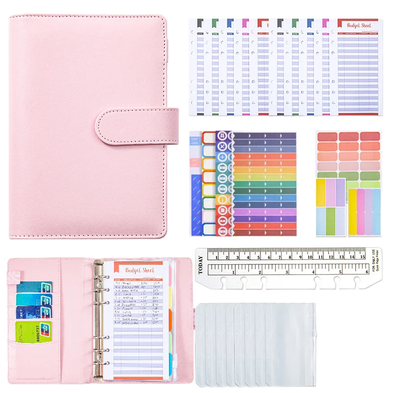 Customizable Printing Logo A6 Leather Loose-Leaf Notebook Cash Budget Planner Creative Planner Binder Gift