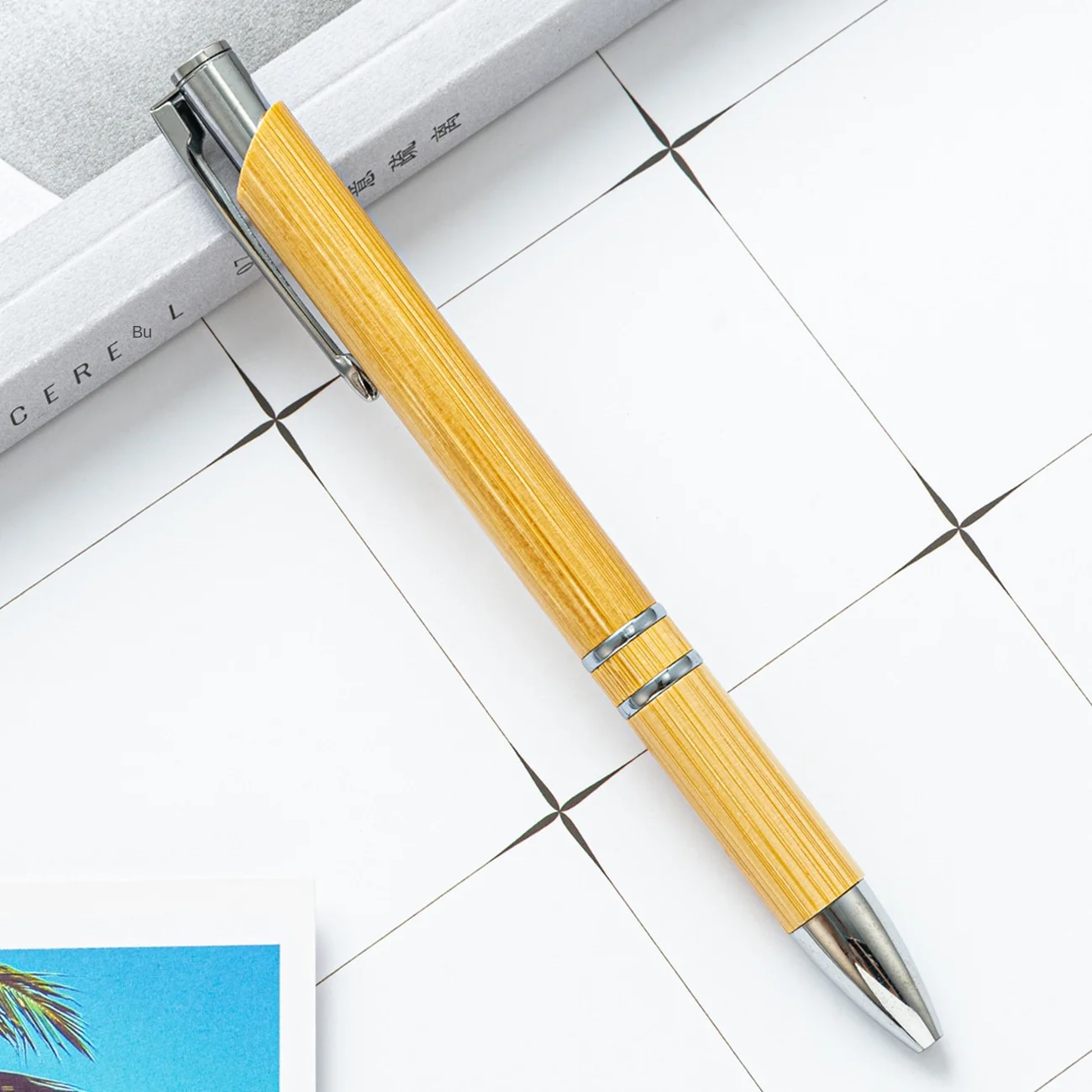 New Bamboo Material Press Ballpoint Pen with Custom LOGO for Business Advertising and Promotional Gifts