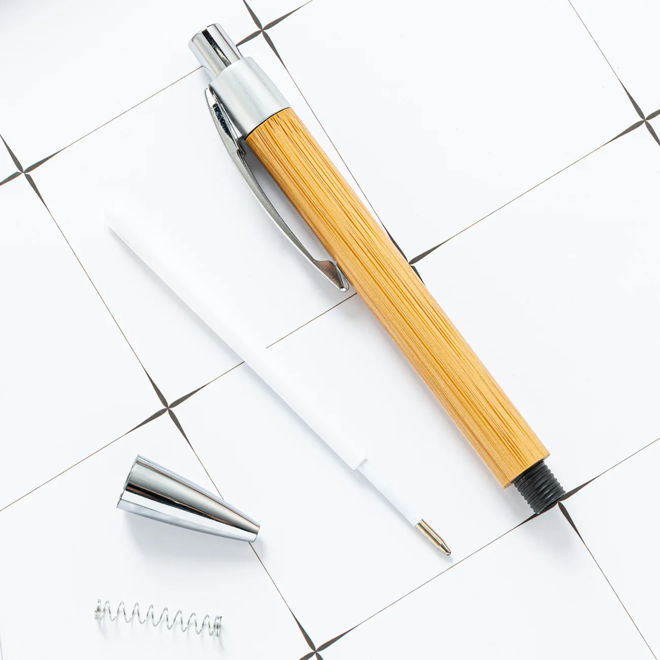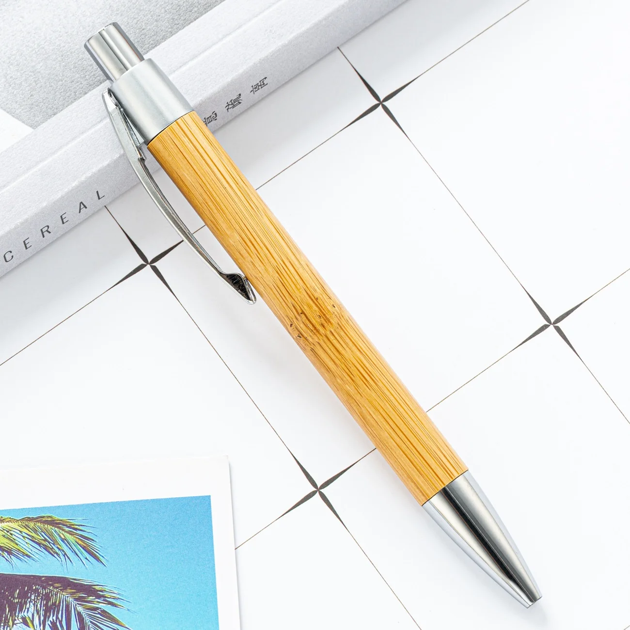 Bamboo Press-type Ballpoint Pen with Custom LOGO 1.0mm Ink Smooth Writing for Promotional Advertising Gift and School Supplies
