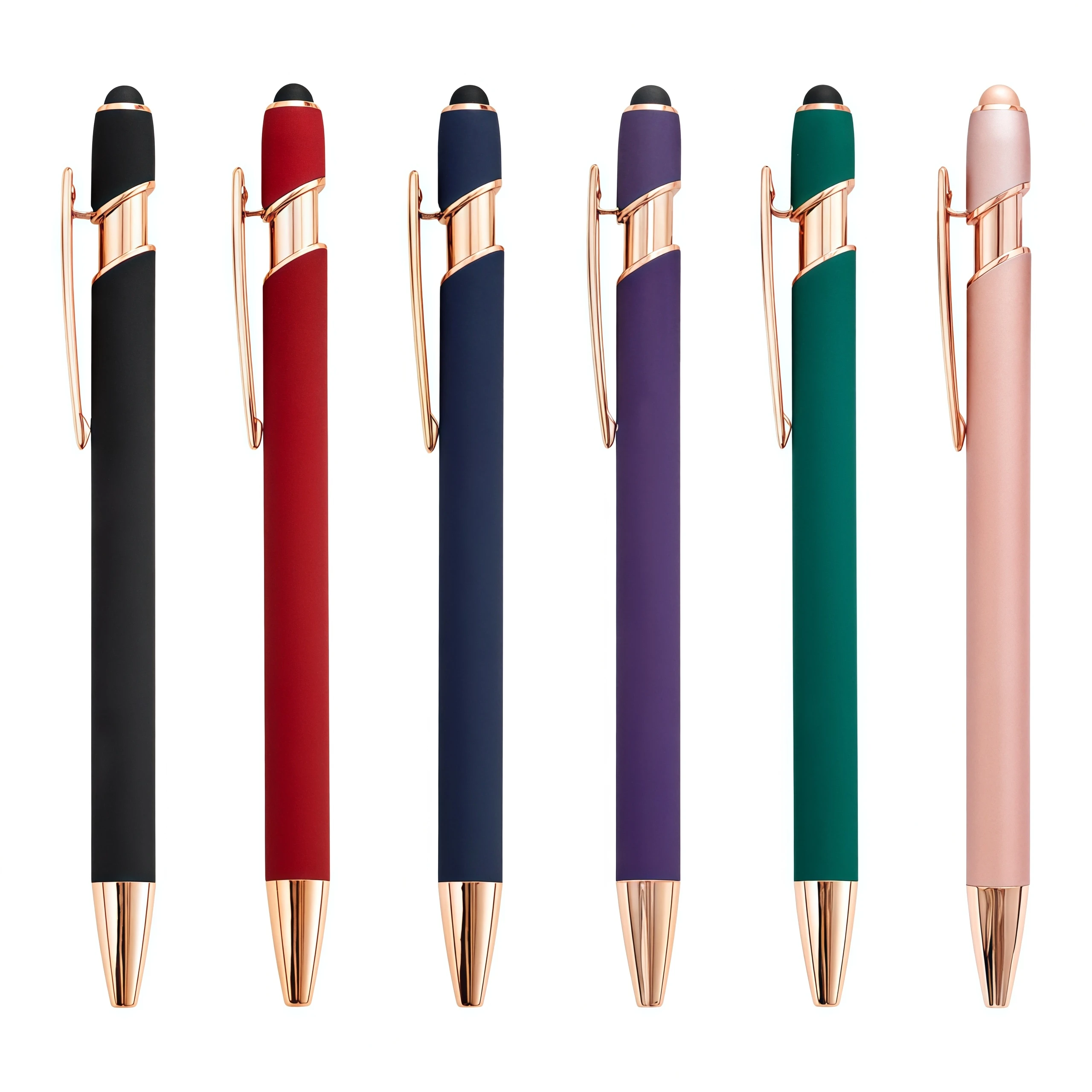High Quality Rose Gold Multifunction 2-in-1 Stylus Metal Ballpoint Pen with Custom LOGO Novelty Office Supplies Promotional Gift