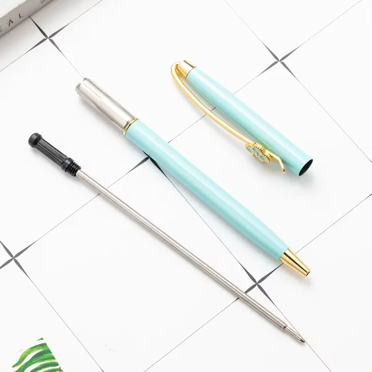 Custom Premium Slim Cute Design Metal Ballpoint Pen Smooth Writing Business Novelty Flower Clip Candy Color Promotion Gift