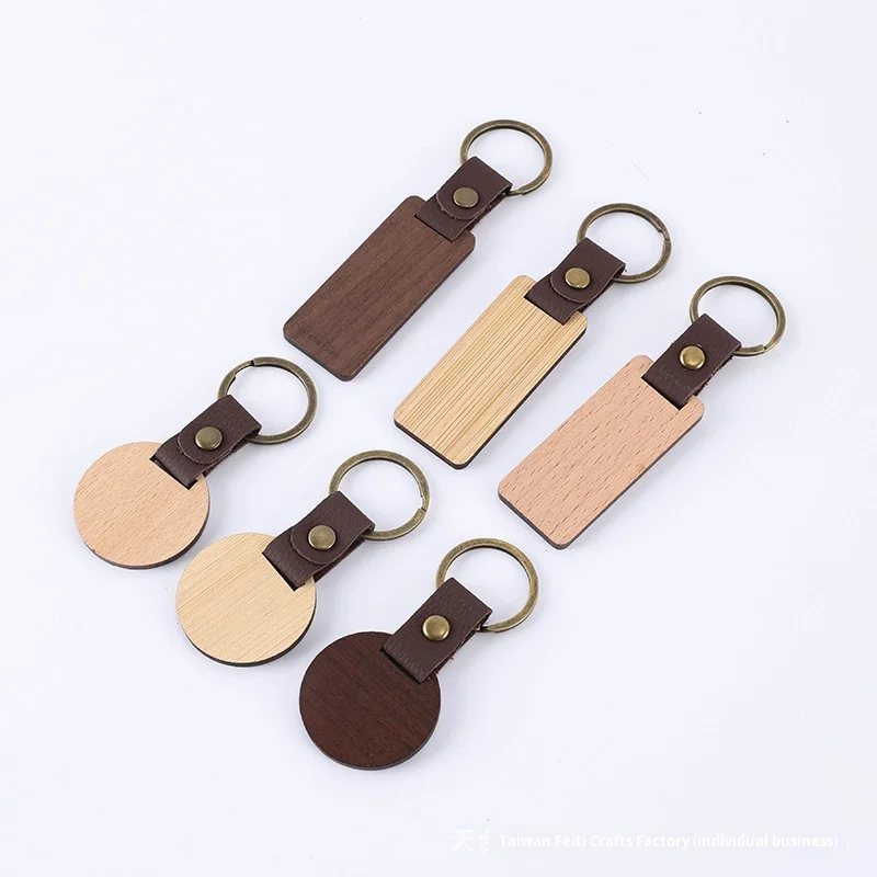 Premium Quality Walnut Keychain with Custom Logo Wooden Beech Pendant Keychain for Promotion Gift