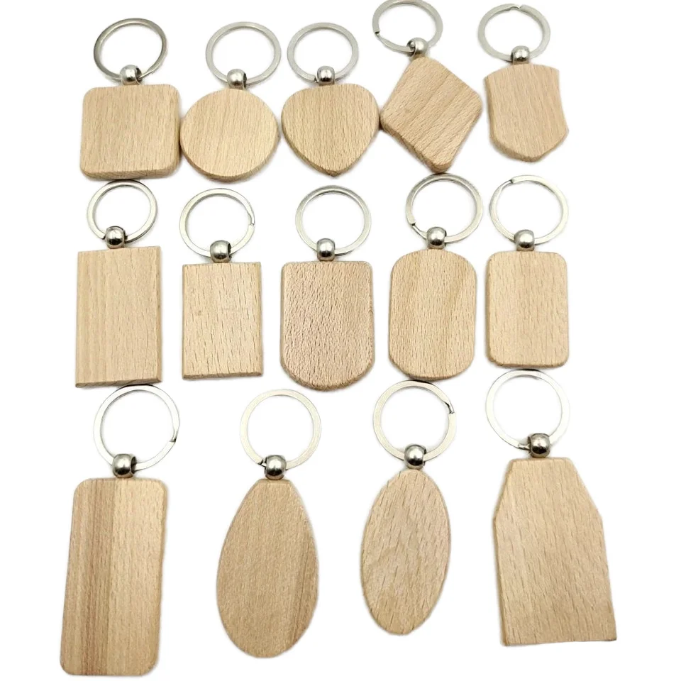 Wholesale Handmade Custom Design UV Printed or Laser Engraved Logo Wooden Keytag Metal Keychain