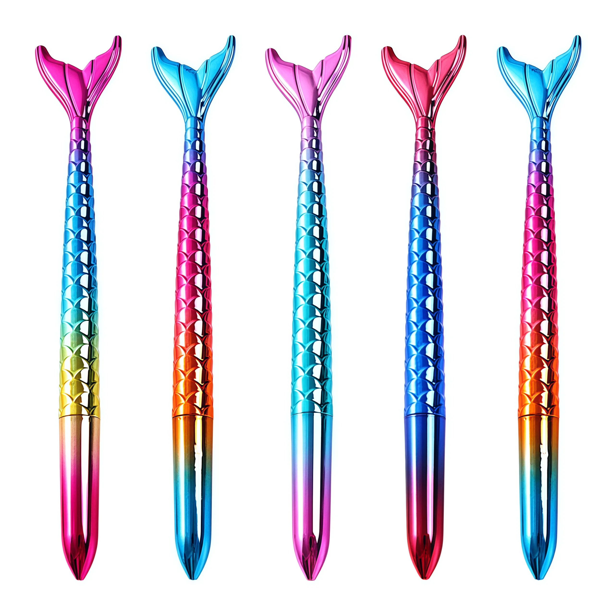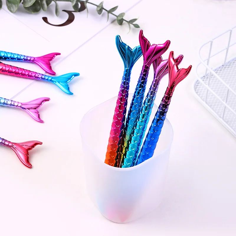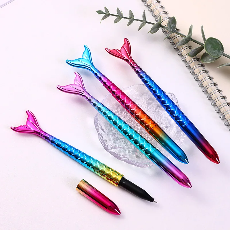 Creative Stationery Mermaid Tail Shape Gel Pen Dream Bead Blue Colorful Body 0.5mm Tip Smooth Writing for Promotional Gift