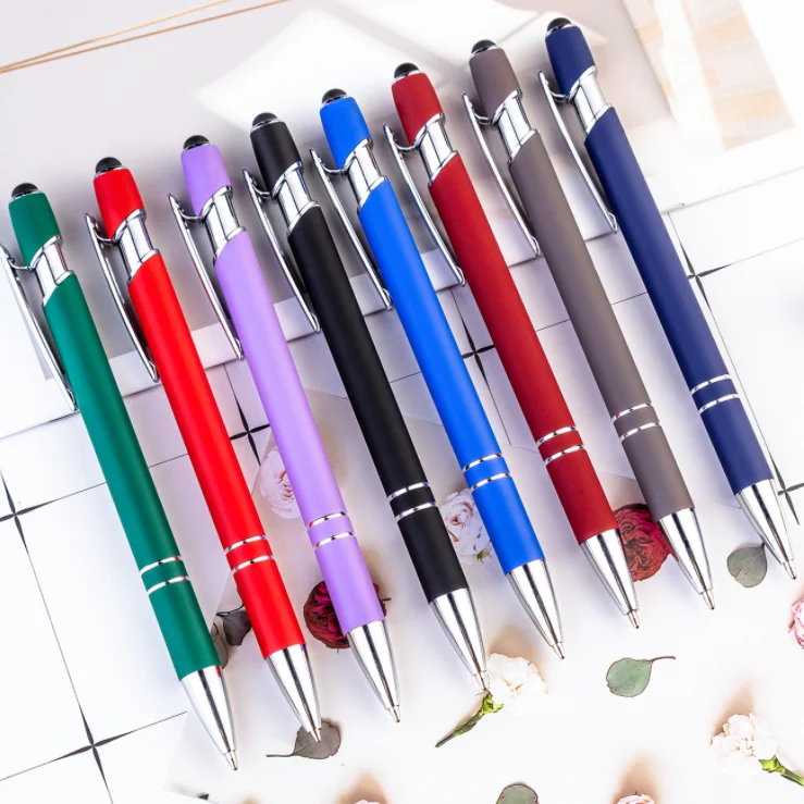 Business Gifts Metal 2 in 1 Stylus Pen Soft Cover Promotional Multi-colored Ballpoint Pen Aluminum Touch Stylus Custom Logo Pens