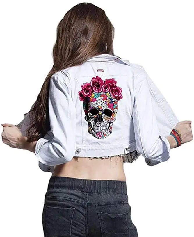 DIY Decorations 3 Large Size Decals Halloween Red Flower Iron on Heat Transfer Decals for Jacket Jeans Clothes