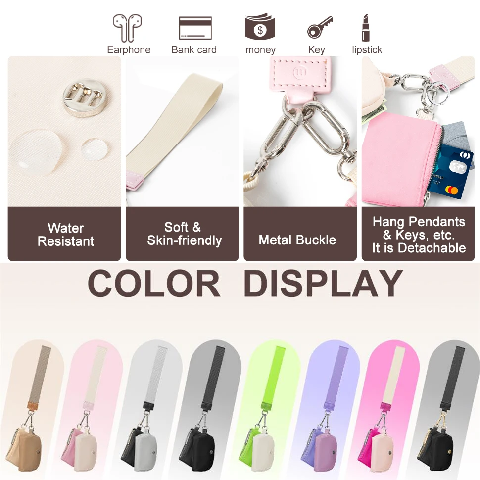 Custom Nylon Waterproof Wristlet Keychain Card Wallet Pocket Mini Zip Around Dual Pouch Sports Lulu Coin Purse Wrist Bag
