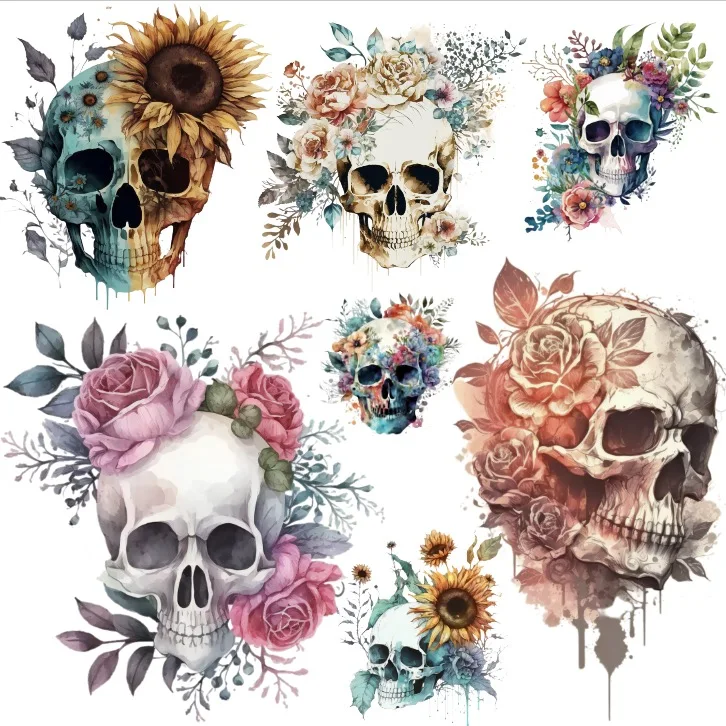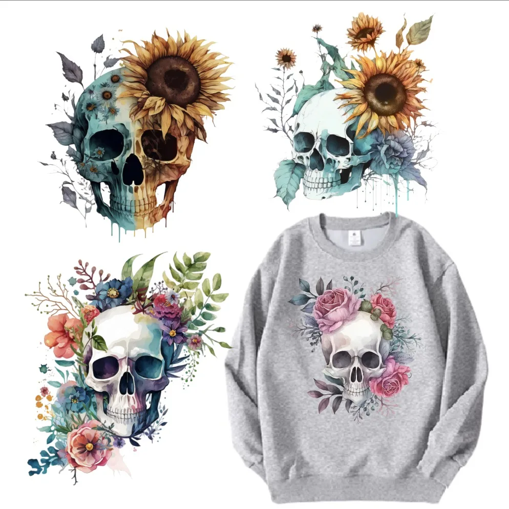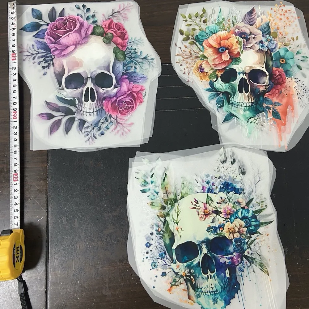 Ready to Ship Skull DTF Designs Logo Printing Sticker Iron on Transfer Label Decals Custom Vinyl Film Plastisol Press Patch