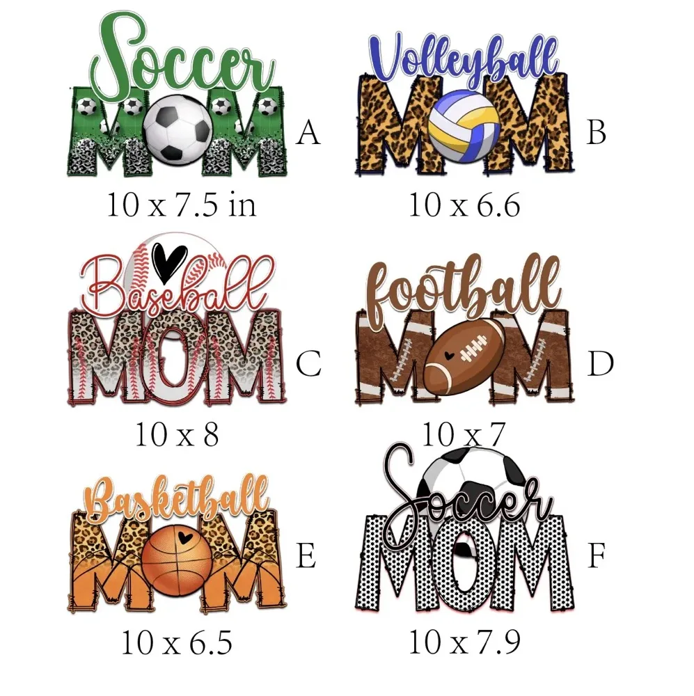 Sports Mom Ready to Ship Brand Logo DTF Gang Sheet Ready to Press Iron on Transfer Print for T-shirt Heat Transfer Stickers