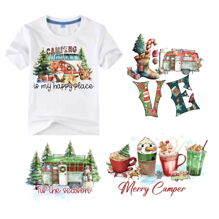 Custom Heat Transfer Vinyl Design Logo for Clothing Christmas Iron on Plastisol Screen Printed Transfers Wholesale Sticker