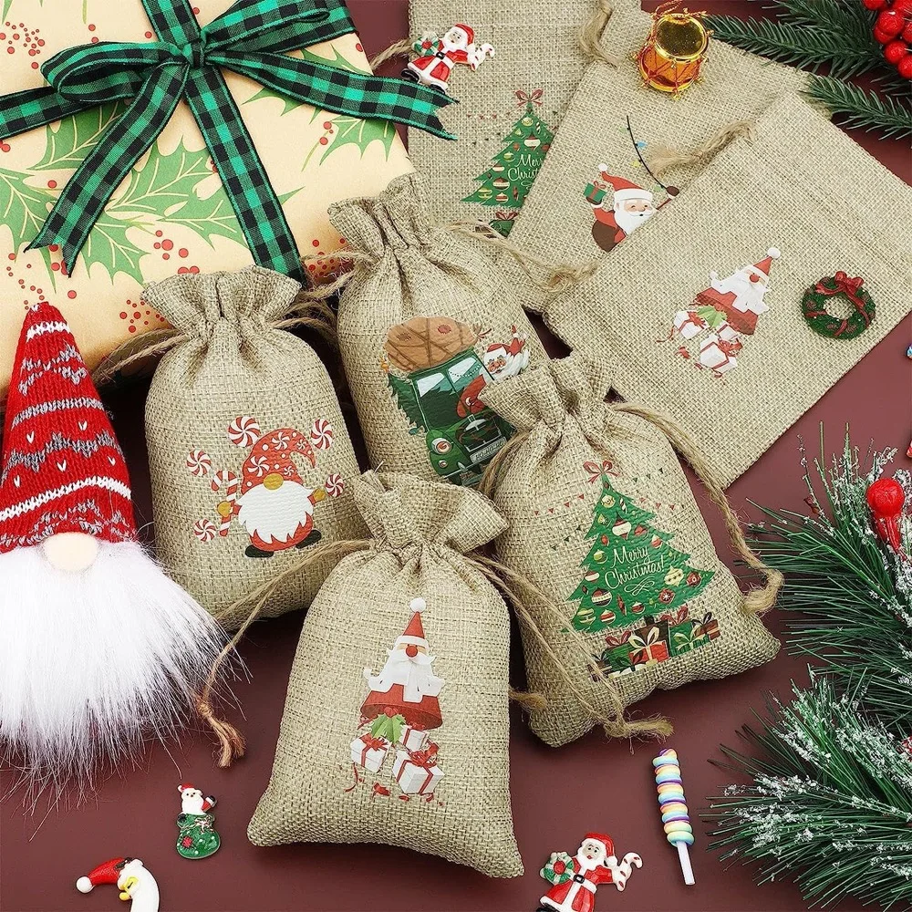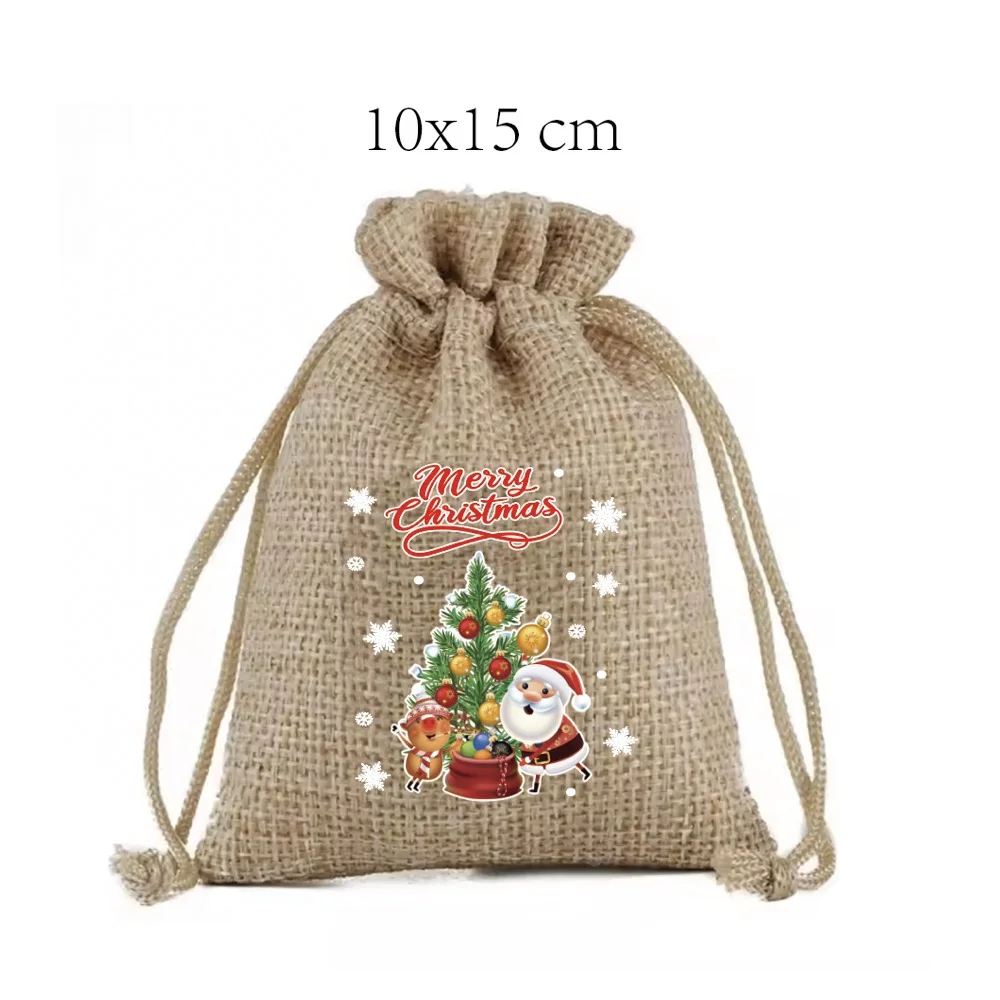 Custom Logo Print Service Christmas Drawstring Pouch Candy Storage Bag Nature Color Gift Jewelry Packing Storage Jute Pouch