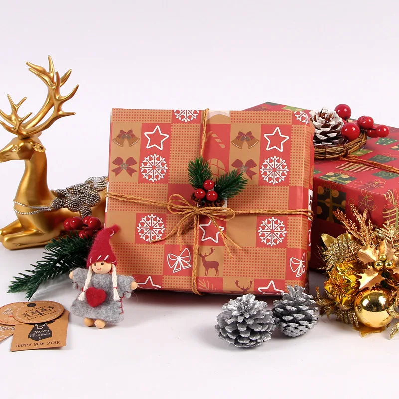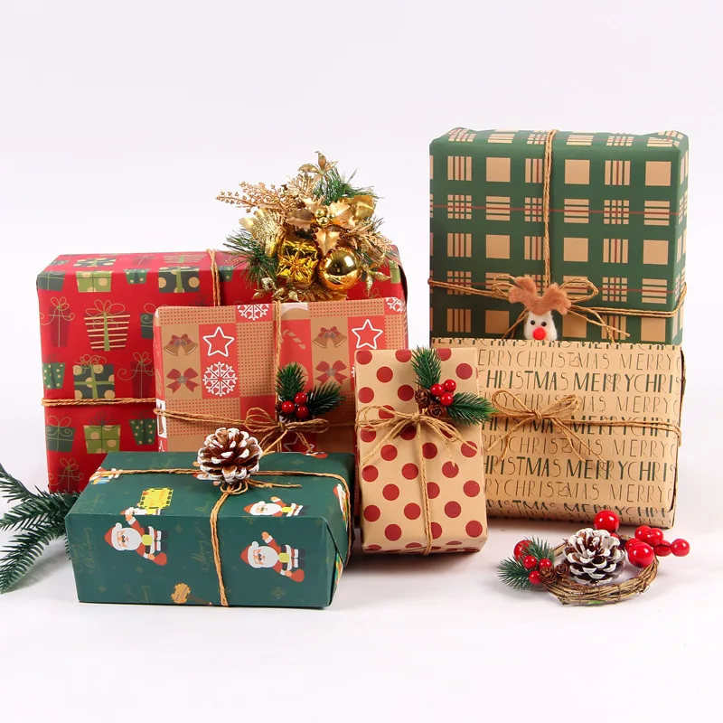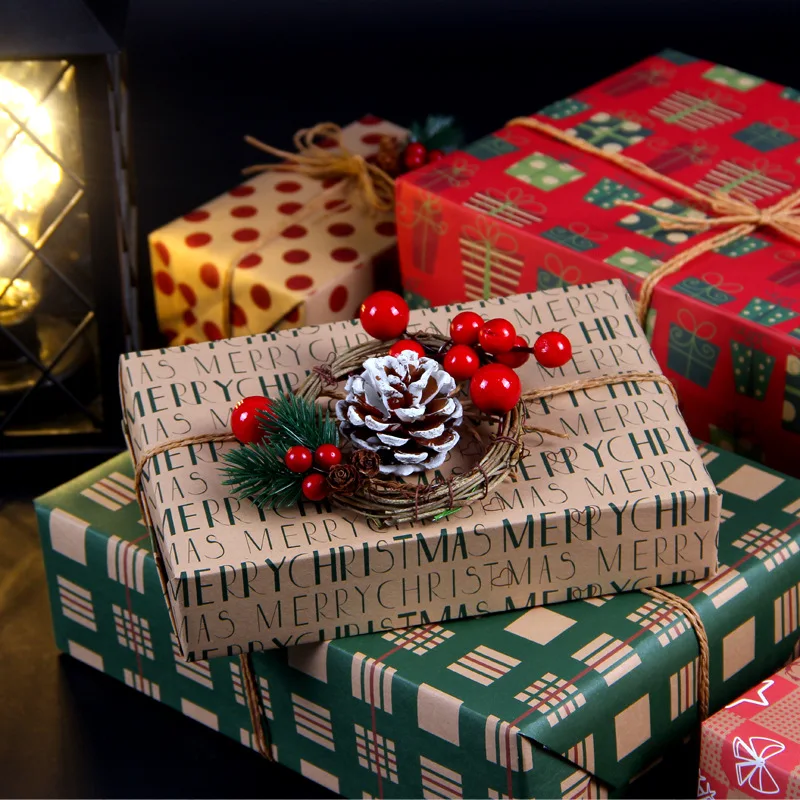Customized Christmas Luxury Retro Tissue Kraft Paper Roll Resin Coated Gift Wrapping Paper for Packaging Gift Boxes