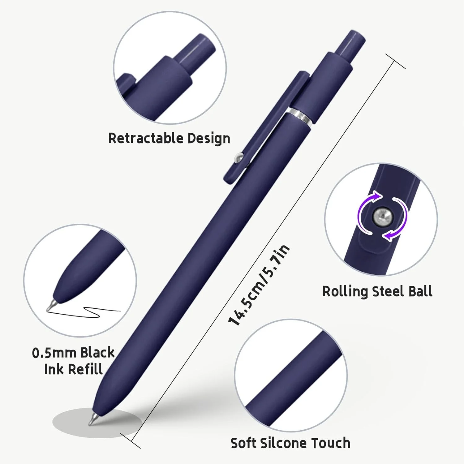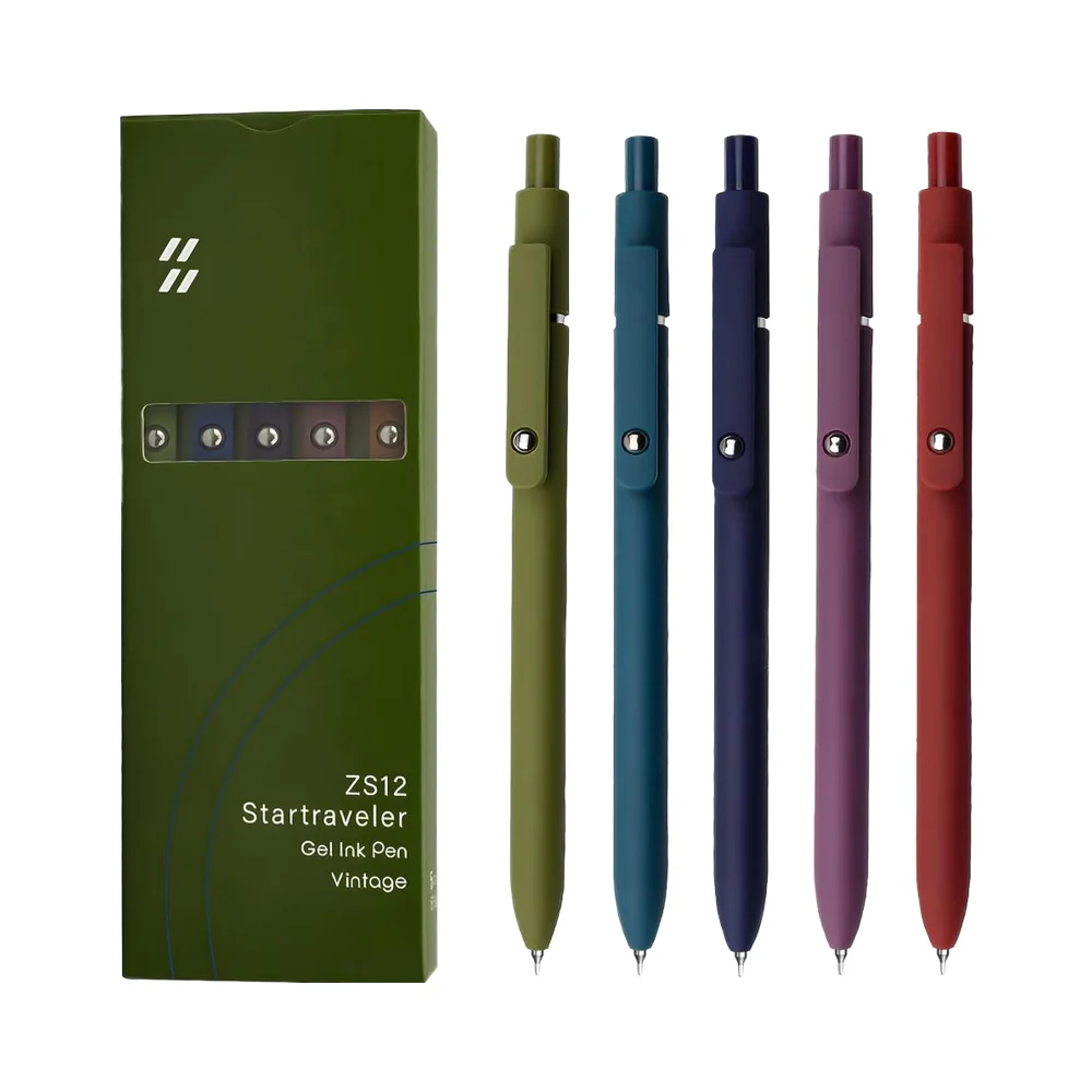 5pcs 0.5mm Black Ink Fine Point Gel Pens Smooth Writing Silicone Grip High-End Metal Clip Retractable for Journaling Plastic