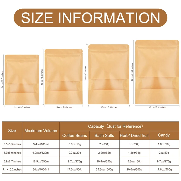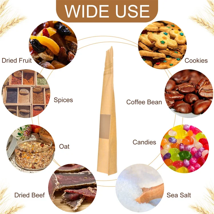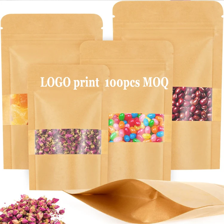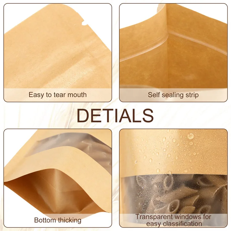 Kraft Paper Zip Lock Food Storage Bags Stand up Resealable and Heat Sealable with Window for Milk Pet Food Jelly Storage