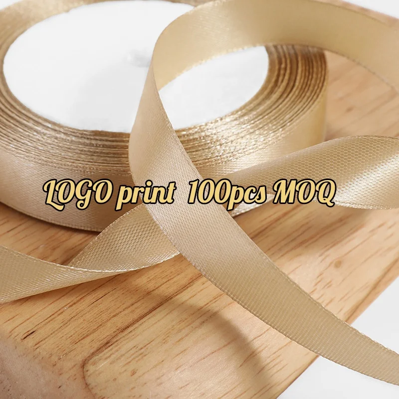 Wholesale Champagne Gold Ribbons Bows Packaging Flowers Jacquard Polyester Satin Ribbons Bow for Gift Boxes