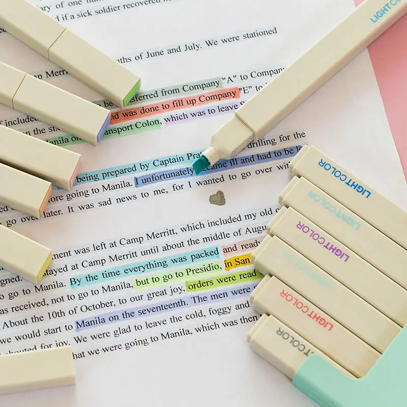 Portable Student Stationery Set Soft Head Highlighter Pen with Flat Brush Tip Simple Design Key Marking Plastic Loose Packaging