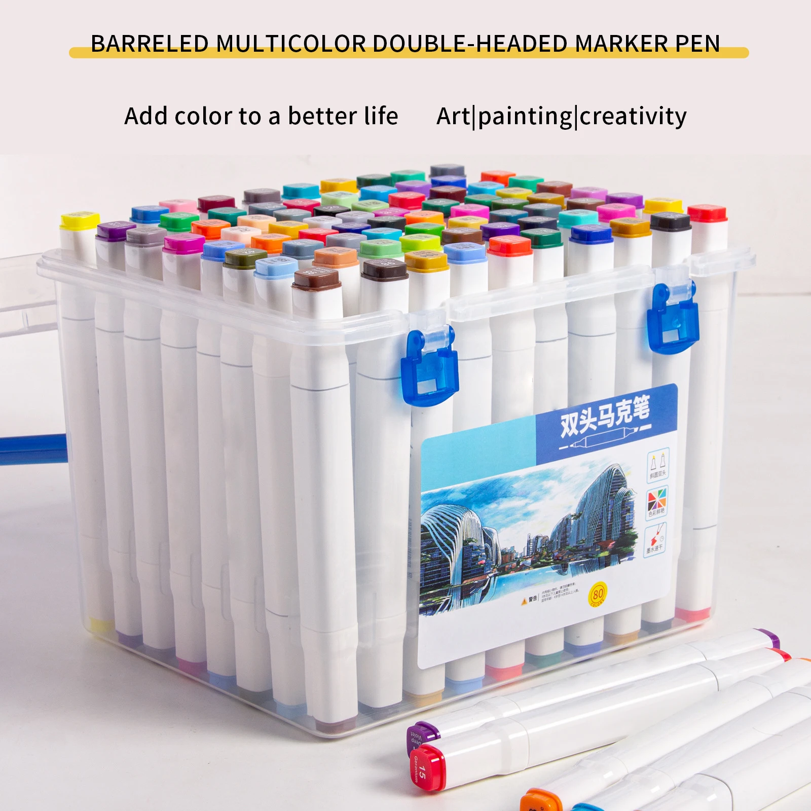80-Color Mark Pen Set Plastic Double-Headed Mark Pen for Painting Design & Anime Art Multiple Colors Manufacture