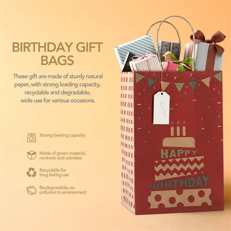Red Birthday Party Supplies Kids Birthday 100% Recyclable Paper Gift Bag with Handles