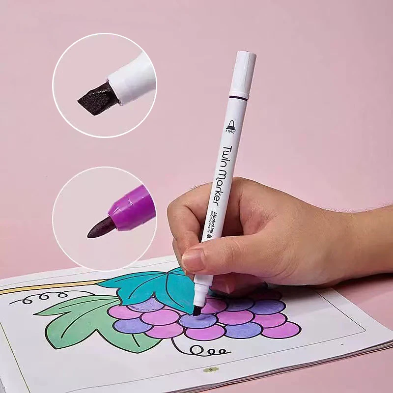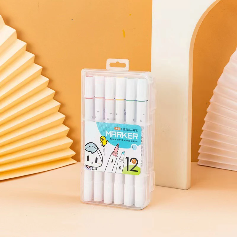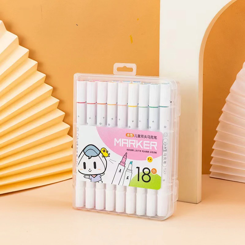 Wholesale Double-Headed Water-Based Marker Pen for Children Elementary School Students Washable Art Painting Colored Set Plastic