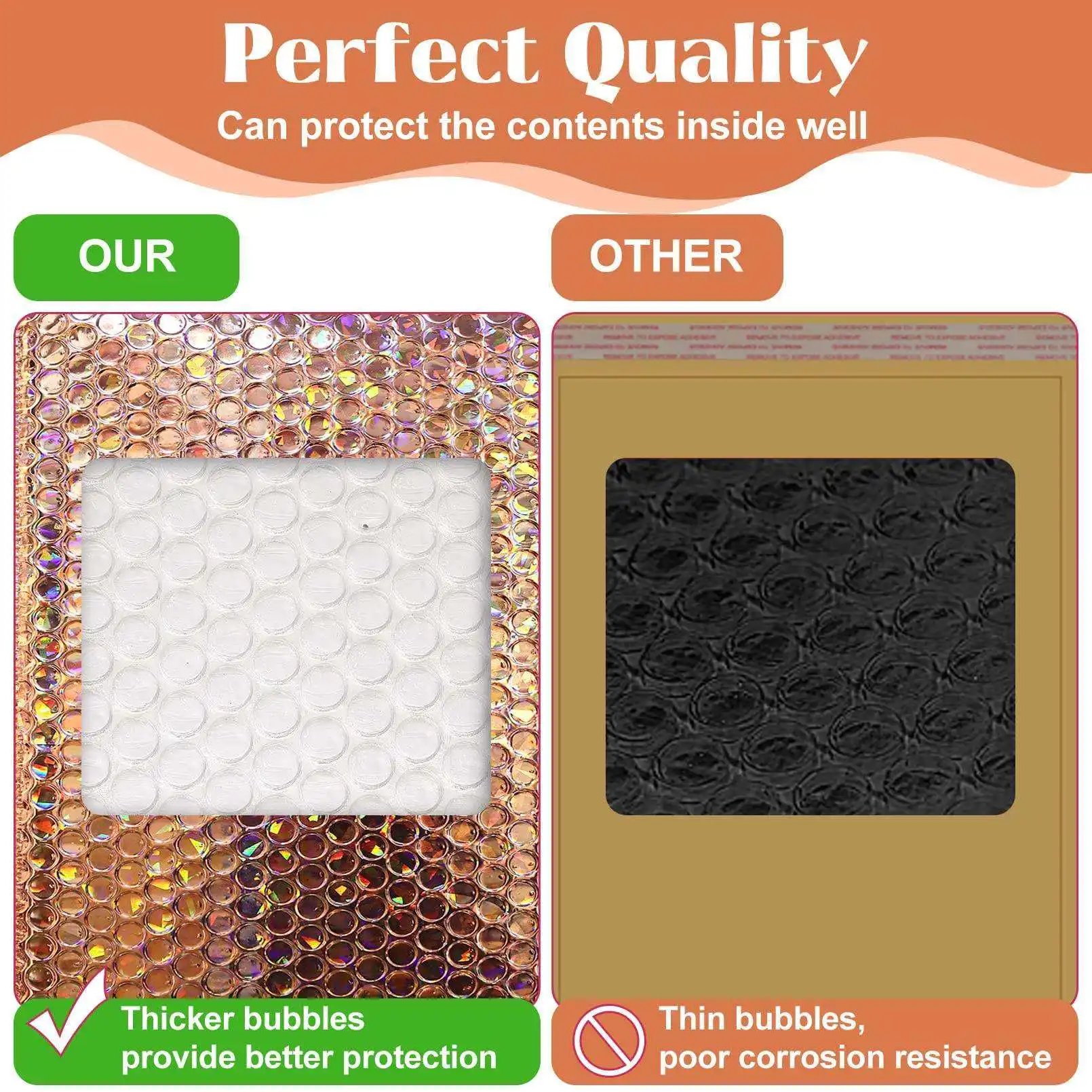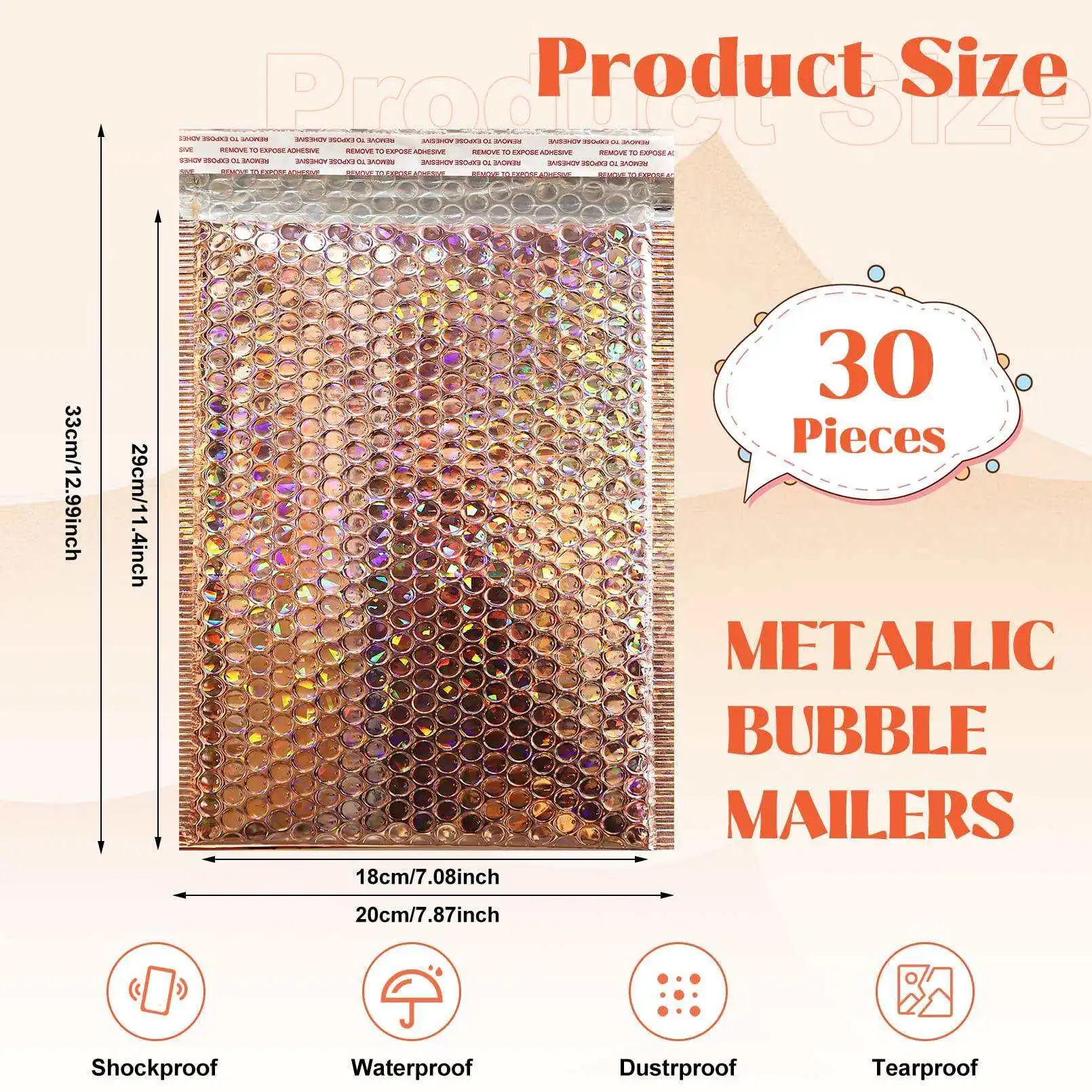 Custom LOGO Color Poly Printed Padded Self Sealing Packing Envelopes Rose Gold Laser Foil Bubble Mailer Bag