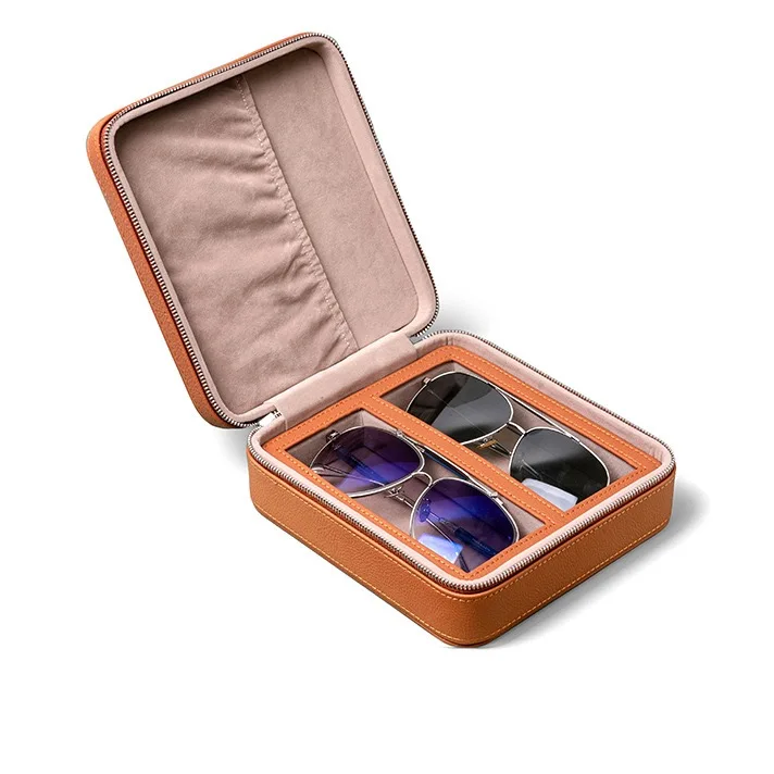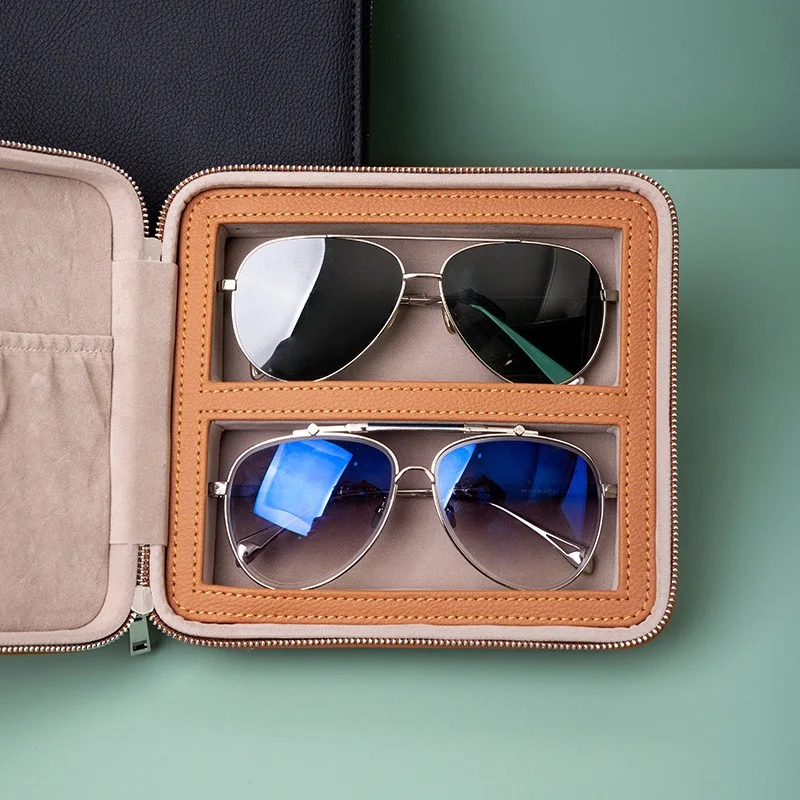 Custom Logo Print Promotion Travel 2 Slots PU Leather Eyeglasses Storage Box Sunglasses Box Jewelry Display Case 2pcs Watch Box