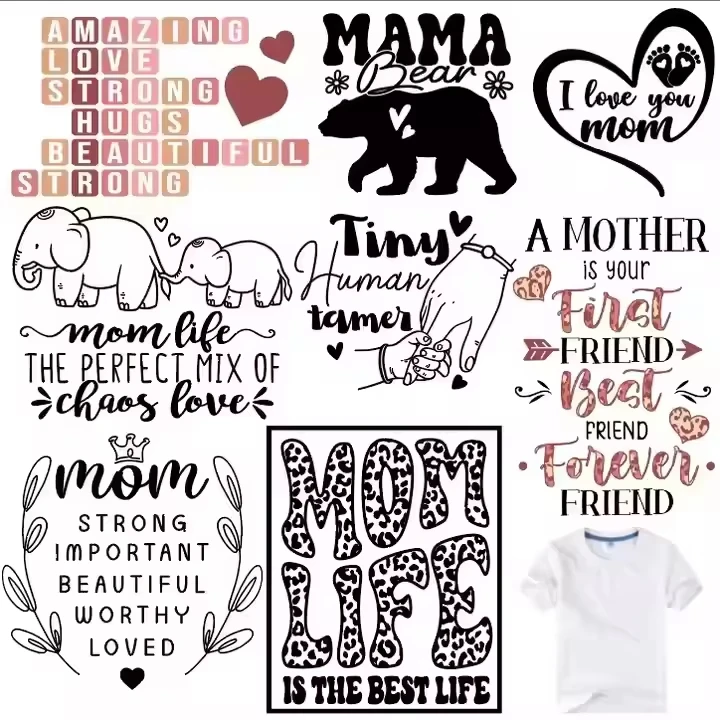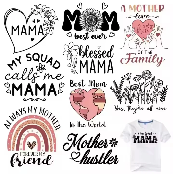 Custom T Shirt Logo Transfer Printing Vinyl Film Mother's Day Iron on Sticker Flexible Clothing Heat Transfer Logo Print Tag