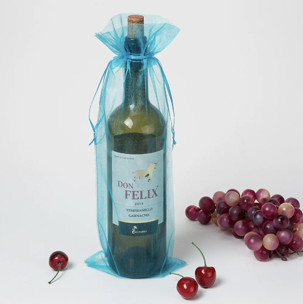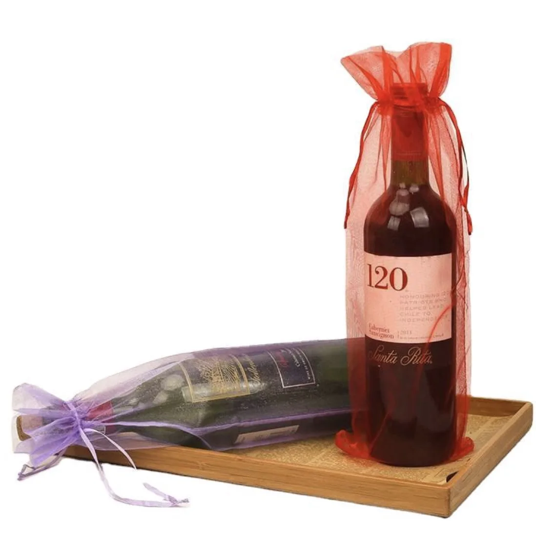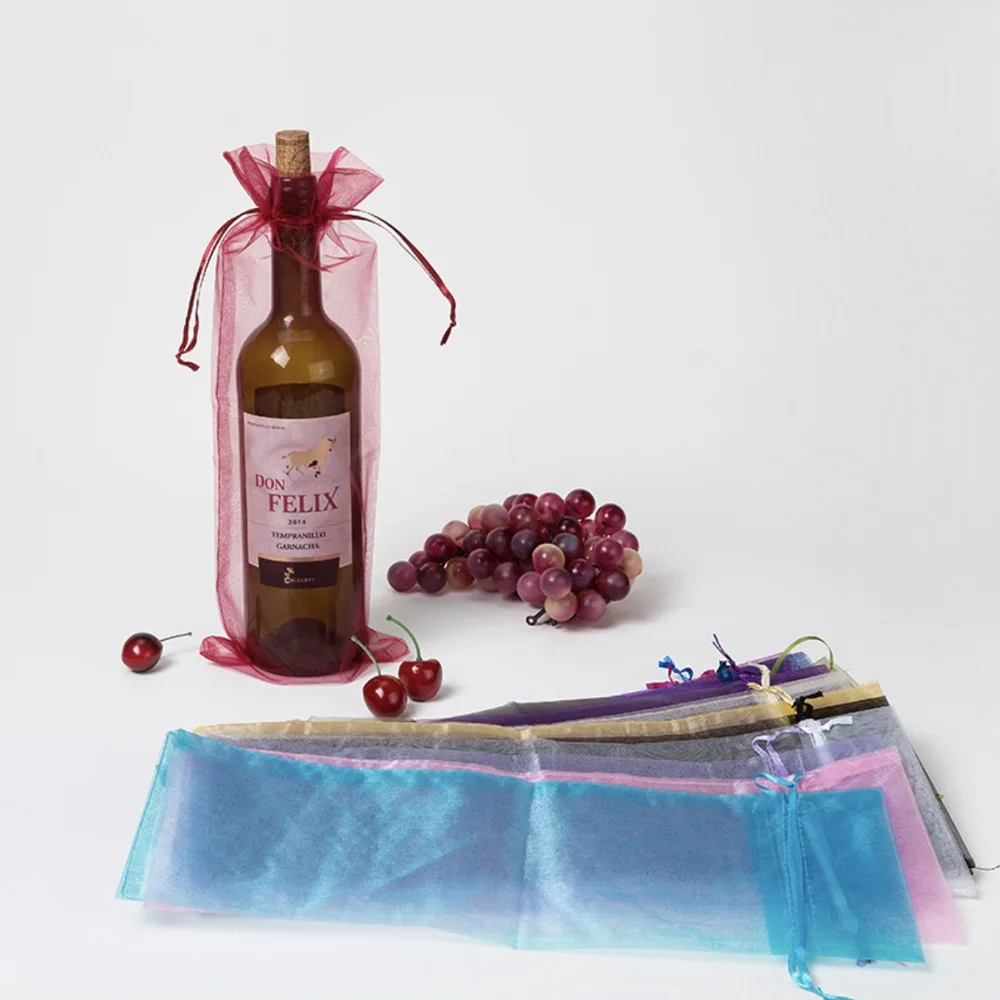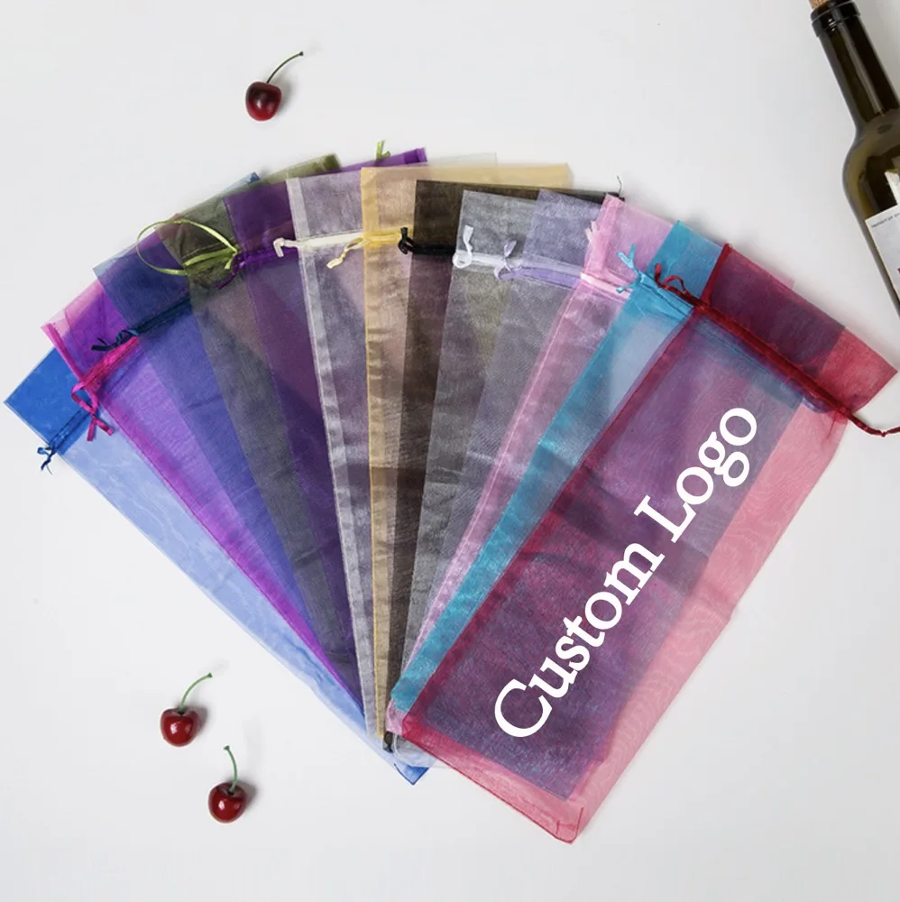 Custom Logo Print Promotion Gift Bag 14x37 Red Wine Drawstring Mesh Pouch Gold Muti Colors Wholesale Gift Package Bag Pack