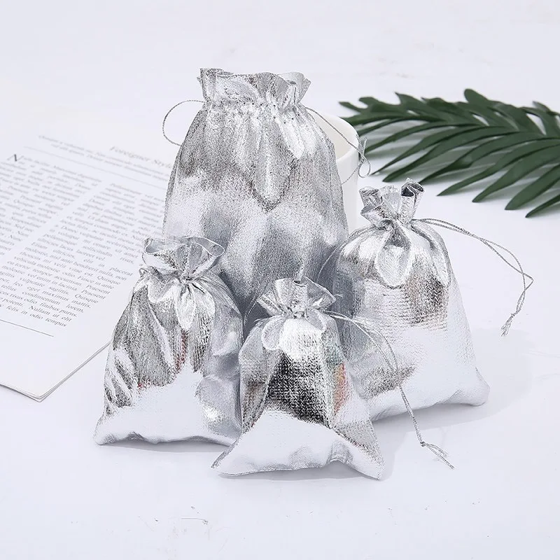 Hot Selling Wholesale Gold Silver Color Jewelry Packaging Pouch Hair Wig Extension Gift Bags Drawstring Pack Storage Bag Custom