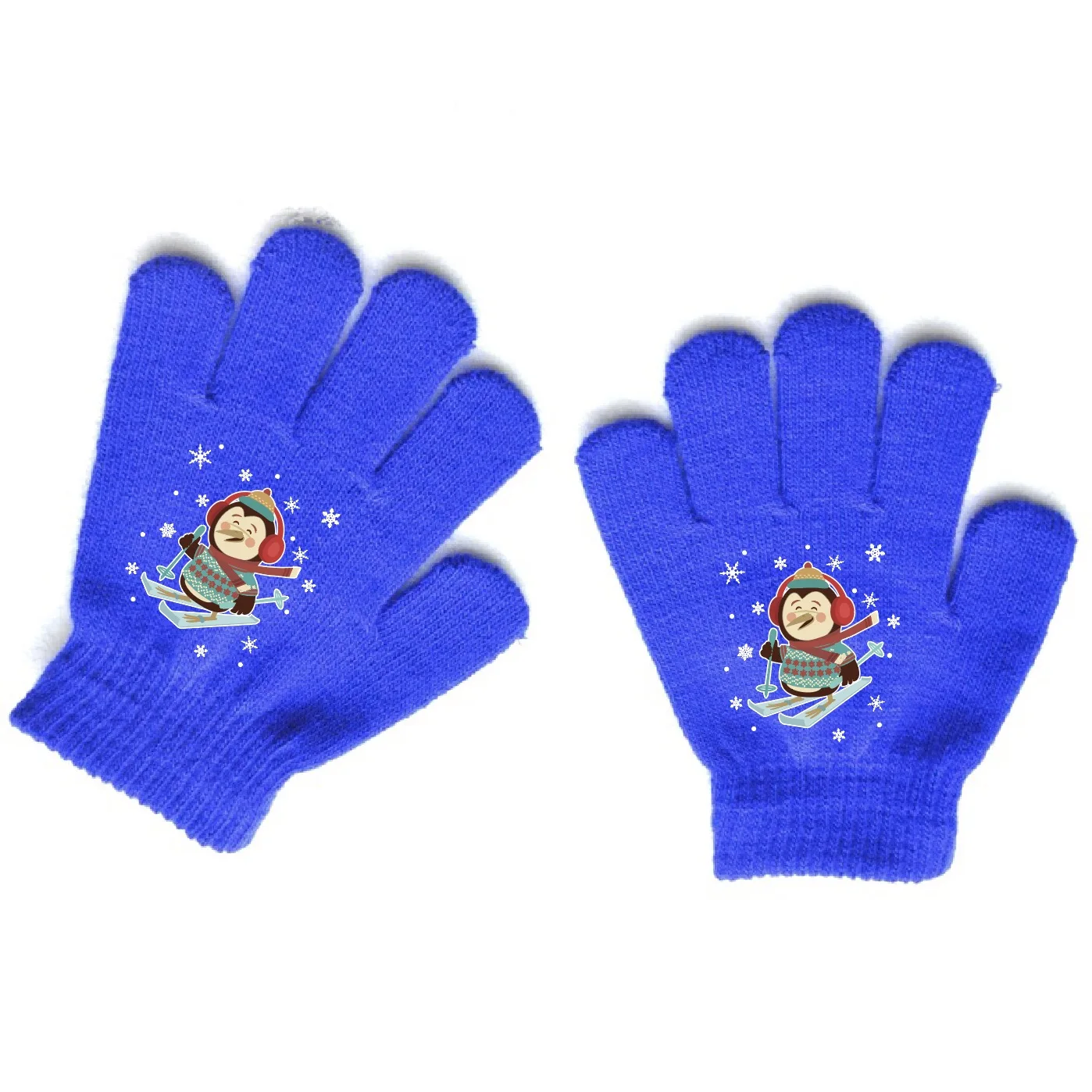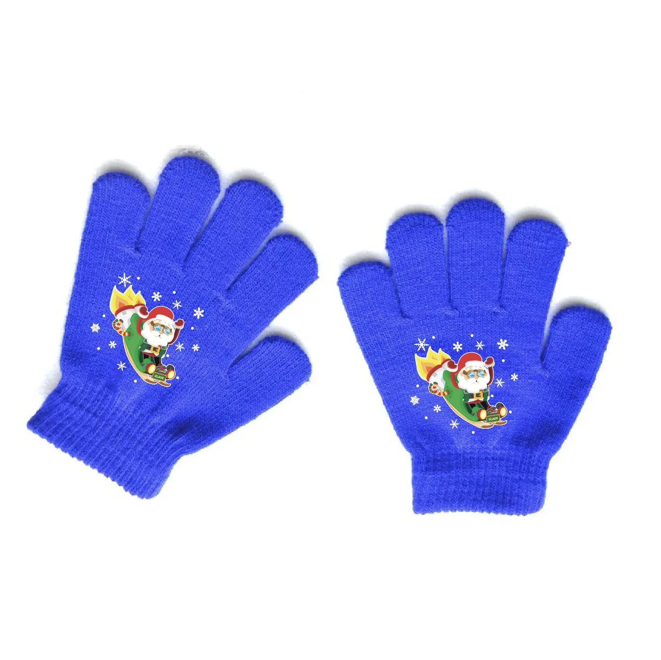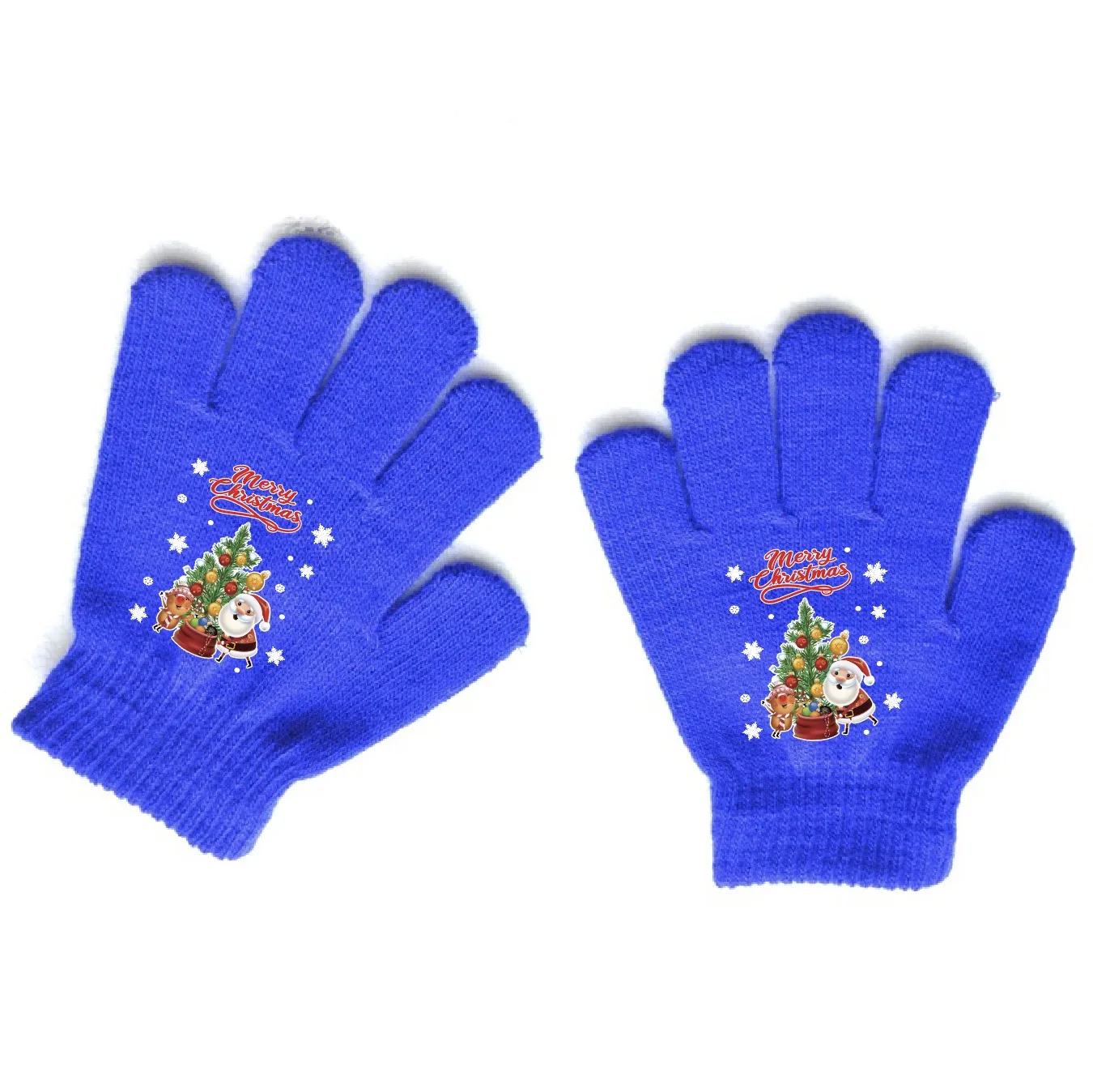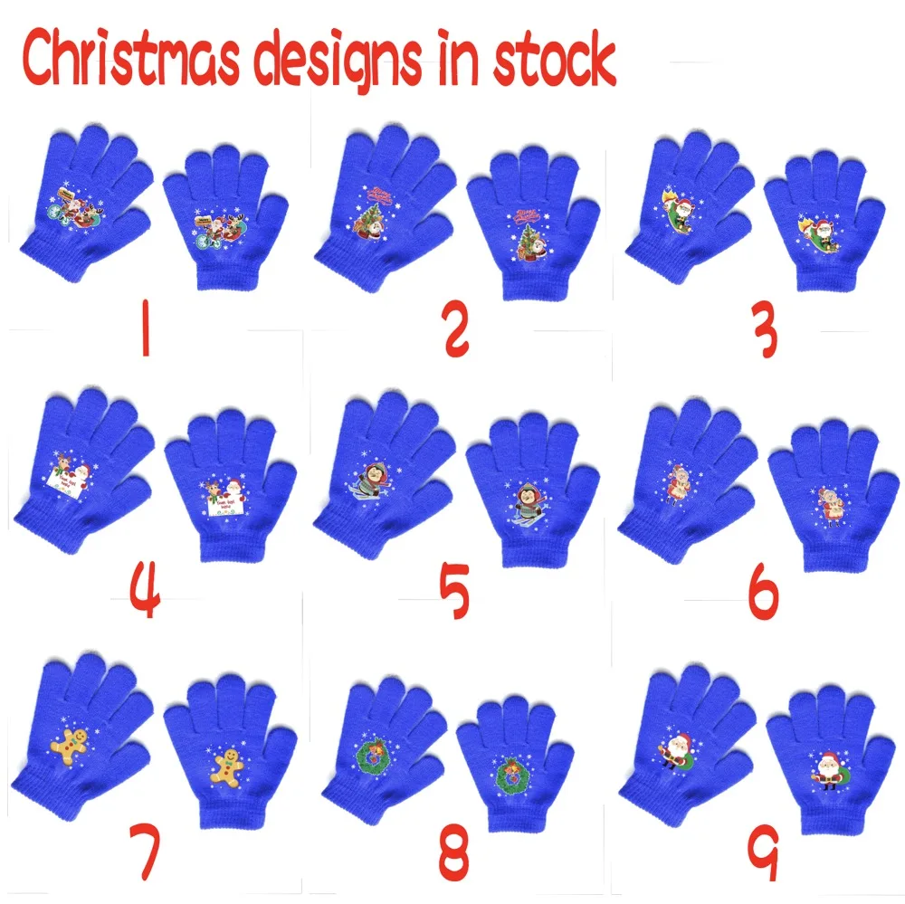 Custom Logo Christmas Designs Kids Winter Knitted Hand Protect Gloves Acrylic Fiber Blue Color Warm Mittens Outdoor Gloves