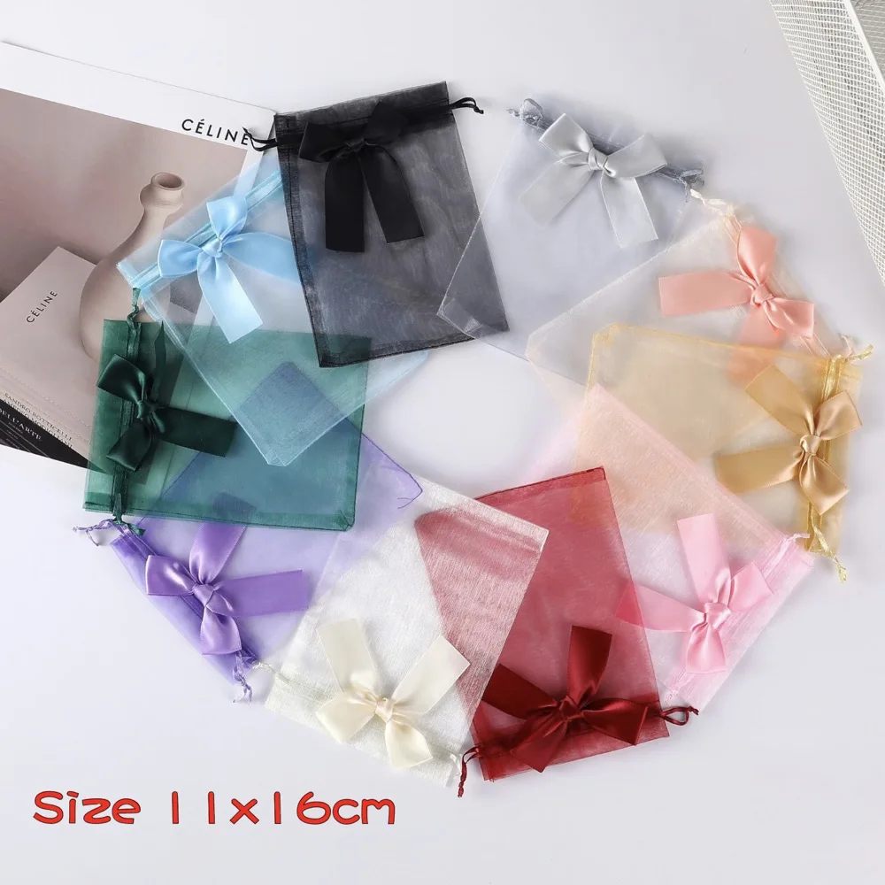 High Quality 11x16cmTransparent Organza Drawstring Gift Pouch Bow Jewelry Mesh Packaging Storage Bag Reusable Candy Gifts Pack