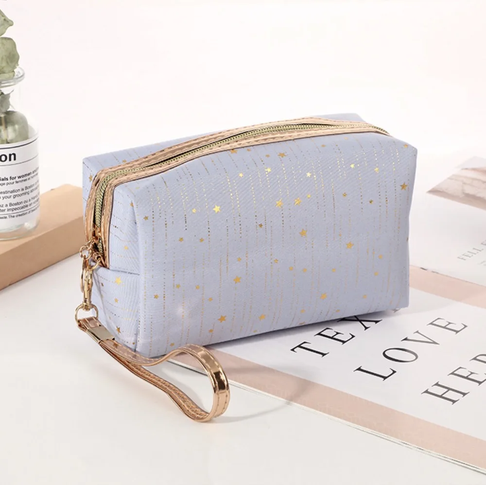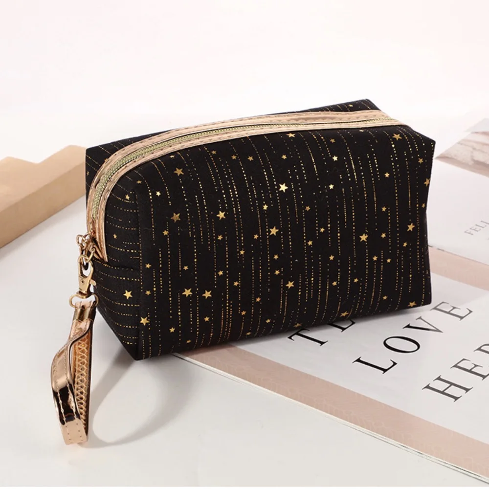 New Fashion Gilding Stars Make up Bags Waterproof Glitter Cosmetic Case Large Capacity Travel Wash Bags with Waist Band Hand Bag
