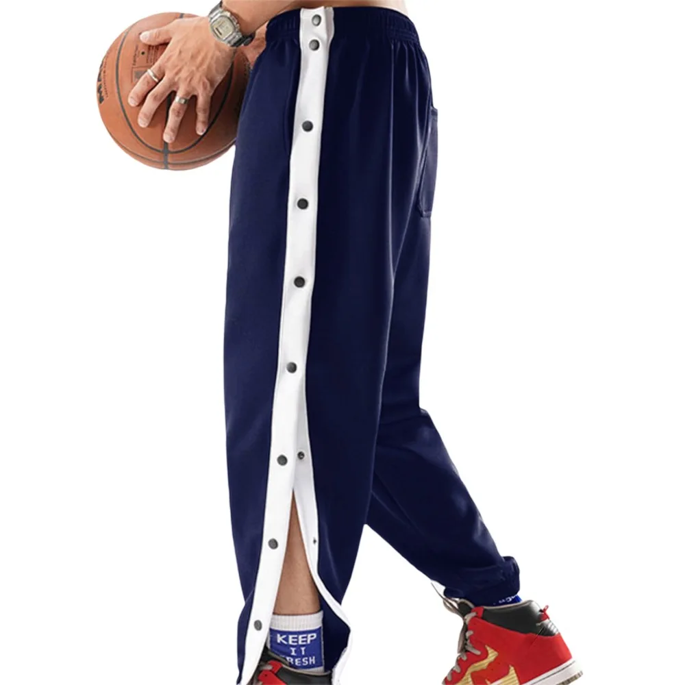 Custom Logo Print Buttons Tear Apart Split Casual Pants Basketball Sports Men's Running Speed Quick Dry Lace up Pants
